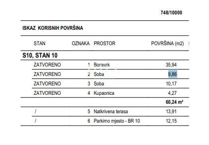 Basic characteristics: Apartment area: 60.24 m (maximum use of the floor plan) Terrace: Spacious covered terrace of 13.91 m ideal for enjoying summer evenings. Parking: Private parking space (12.15 m) included in the price. Location: Quiet street, only 300 meters of easy walk to the crystal clear sea.