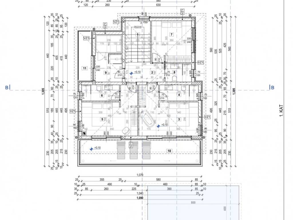 Projekt i građevinska dozvola! Najveća prednost ove nekretnine je pravomoćna građevinska dozvola, što Vam omogućuje početak radova odmah. Projektirana je moderna samostojeća vila s bazenom, površina 203 m2, razvedene na prizemlje i kat.