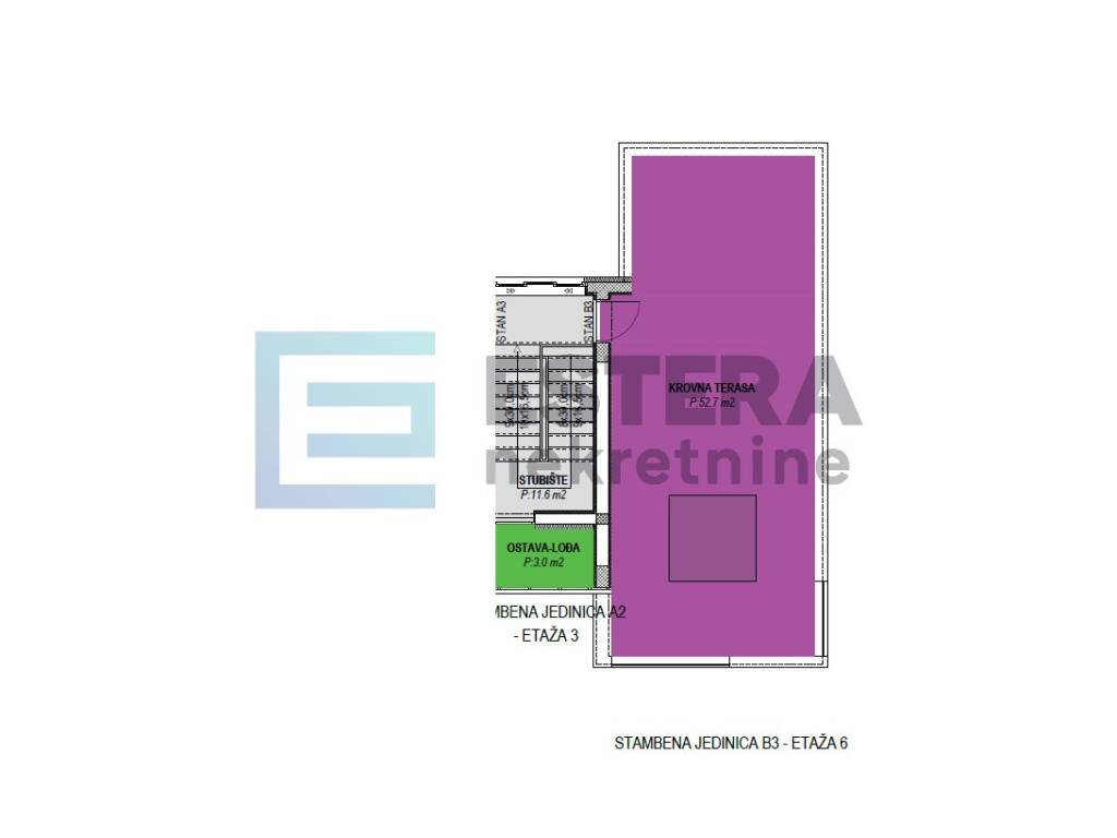 - Krovna terasa: 52,70 m2