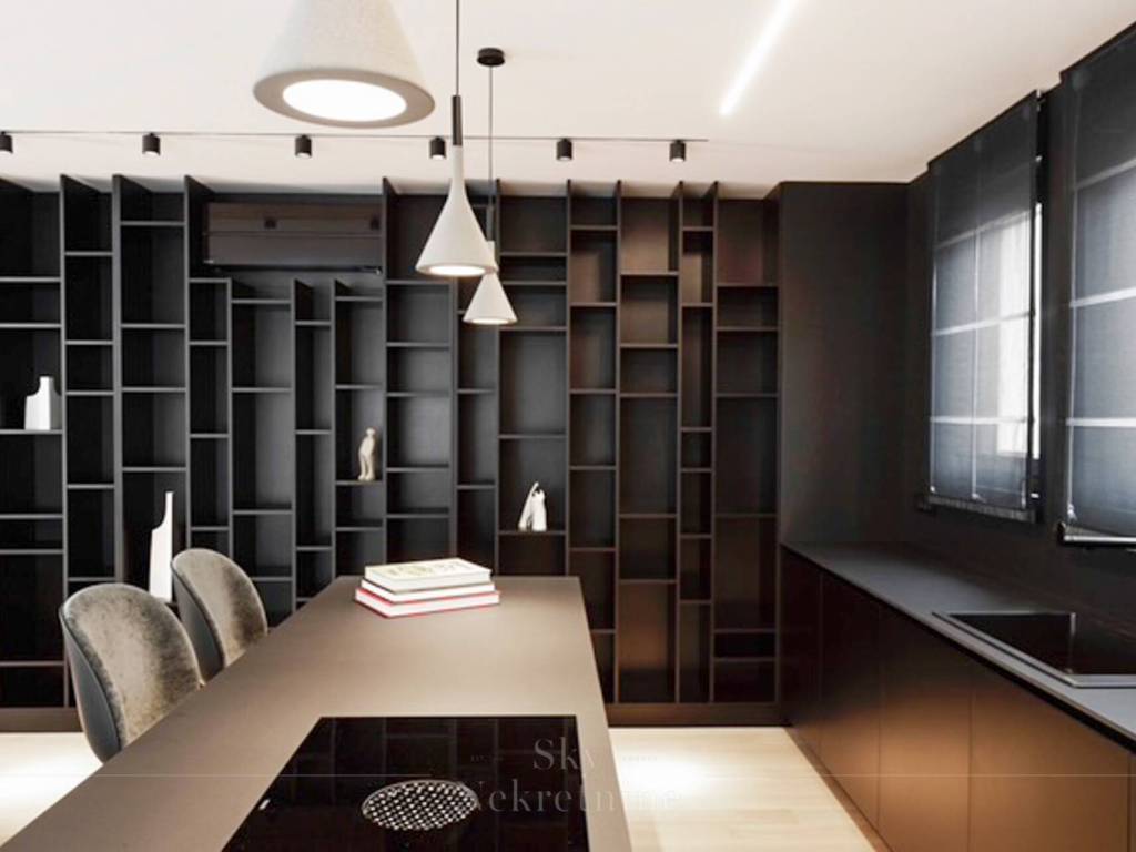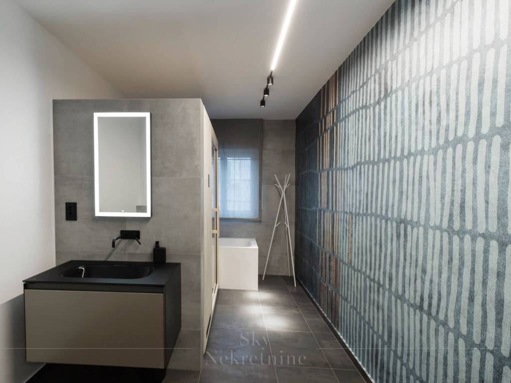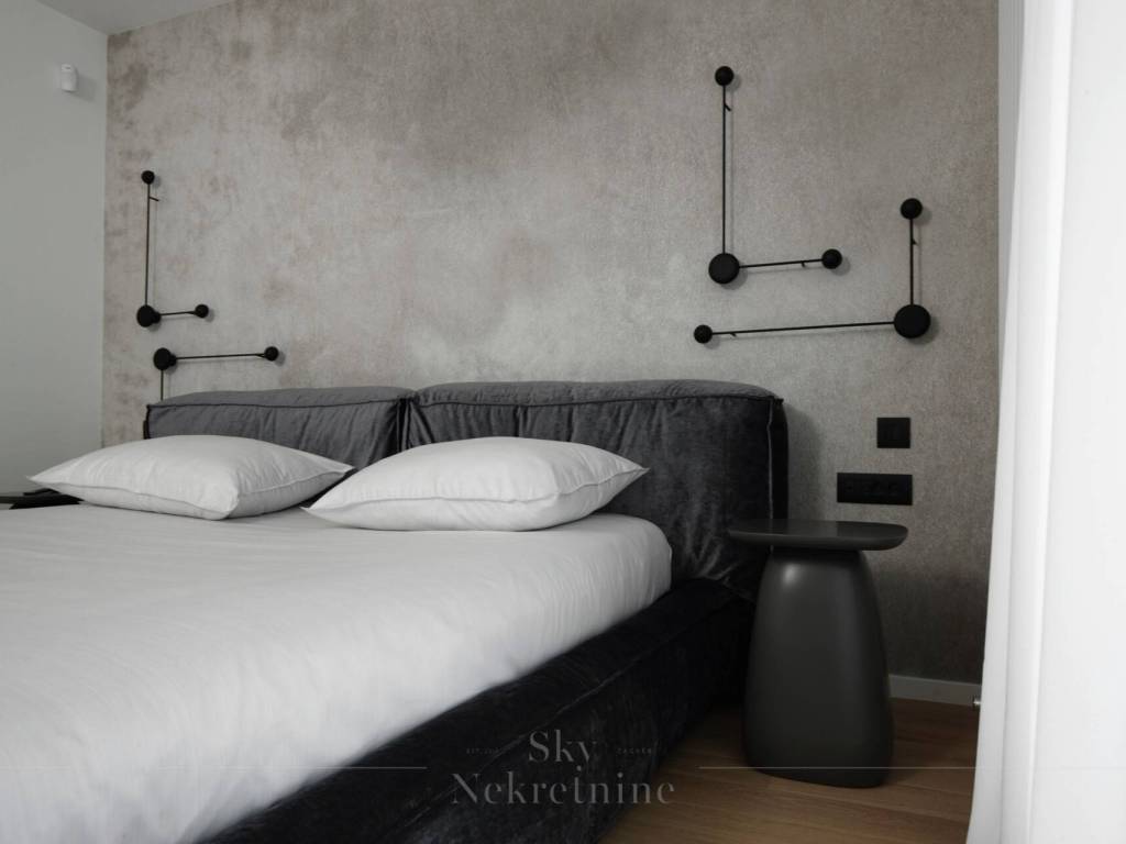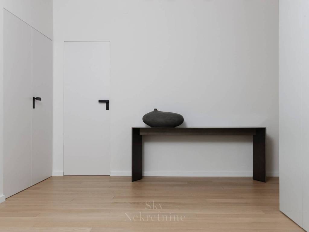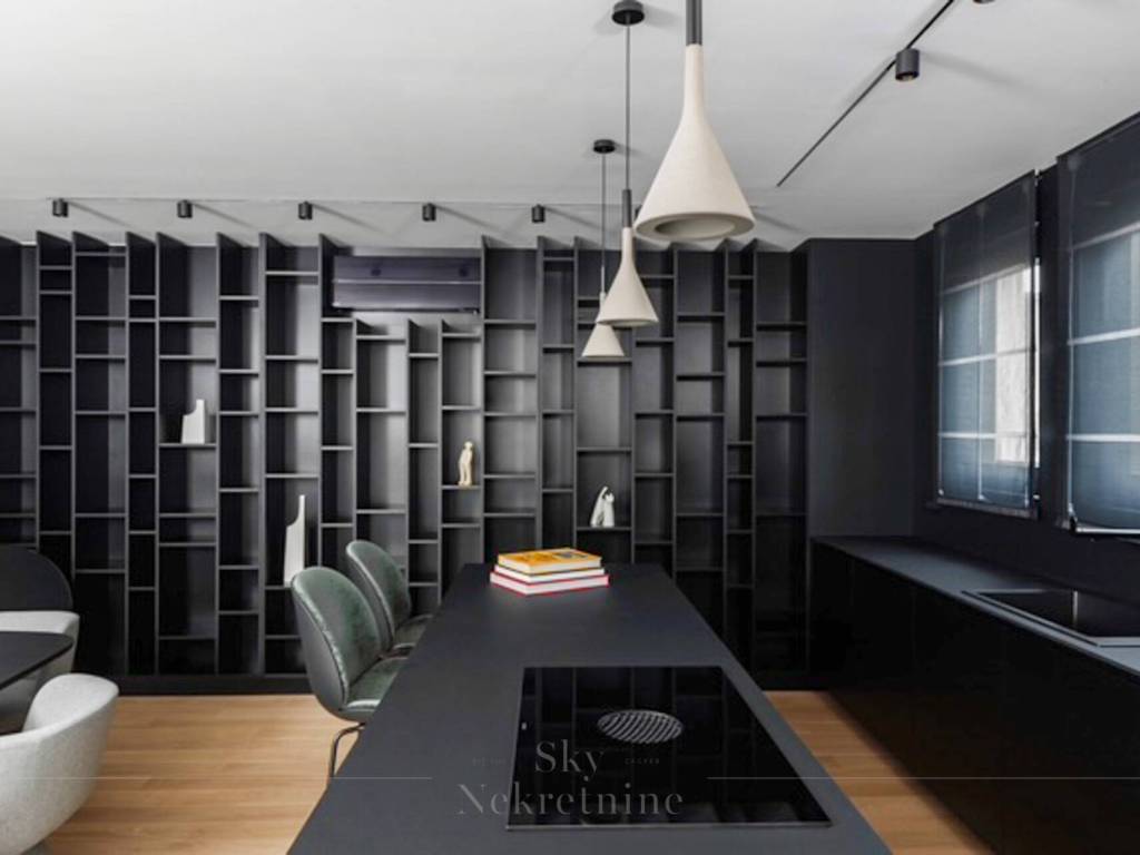Stan je luksuzno opremljen vrhunskim namještajem te se sastoji od ulaznog hodnika, prostranog open-space dnevnog boravka s kuhinjom i blagovaonicom, tri spavaće sobe te kupaonice u kojoj se nalazi sauna, što ovoj nekretnini daje dodatnu razinu komfora i luksuza.