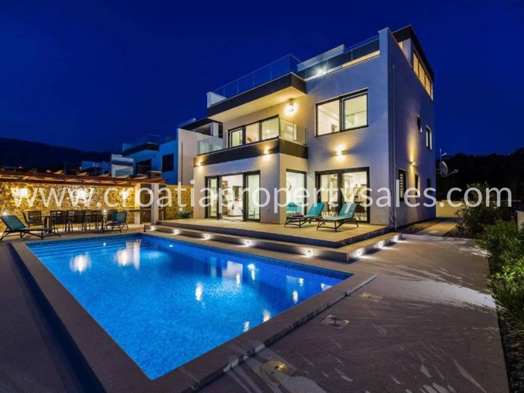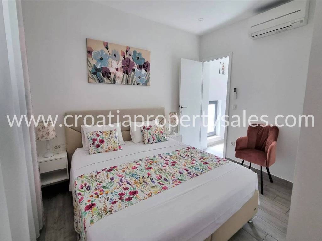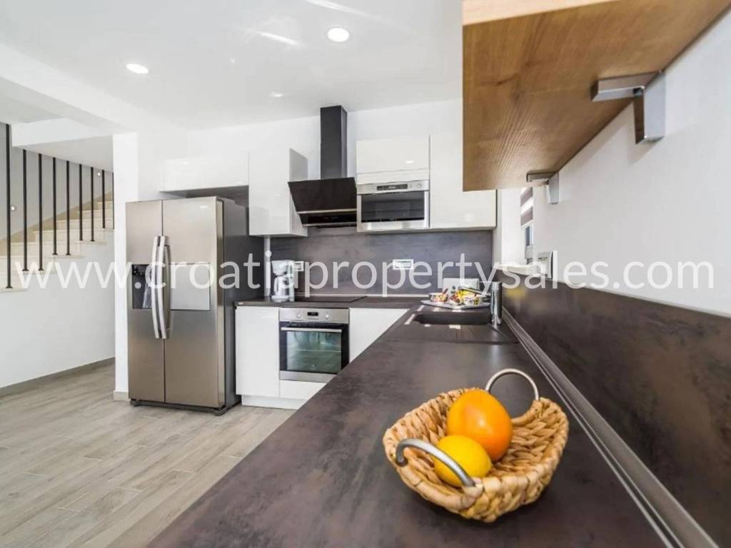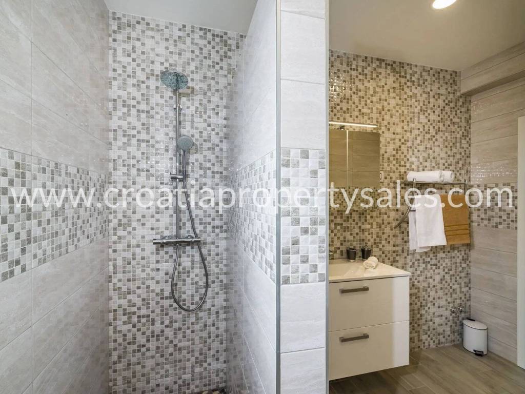 The top floor has a rooftop terrace (partially covered) with panoramic views of the sea and Mount Velebit.