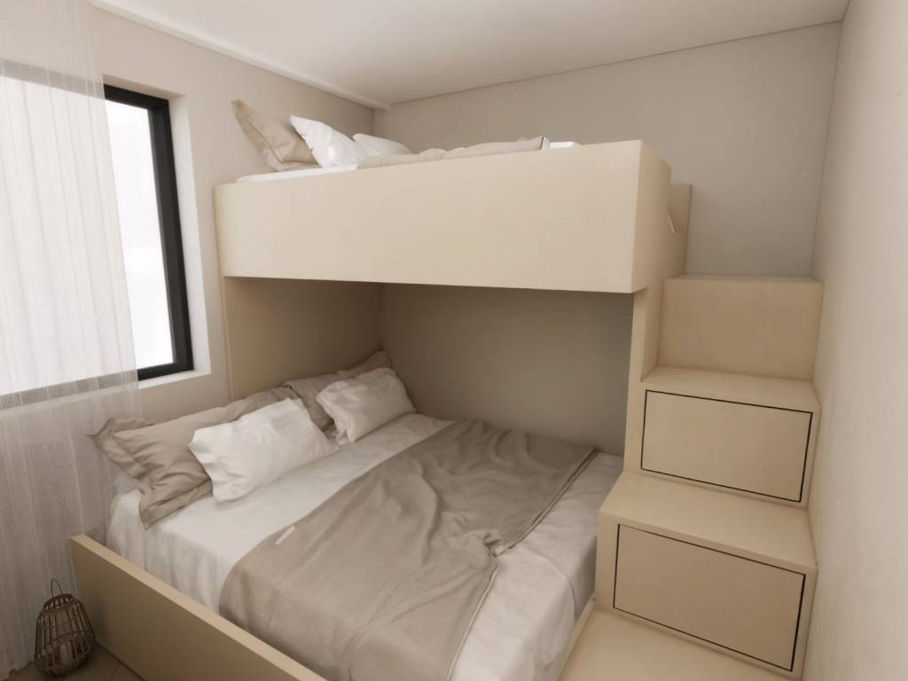 Sastoji se od: • kuhinje s blagovaonicom i dnevnim boravkom • dvije spavaće sobe • kupaonice • predsoblja • terase