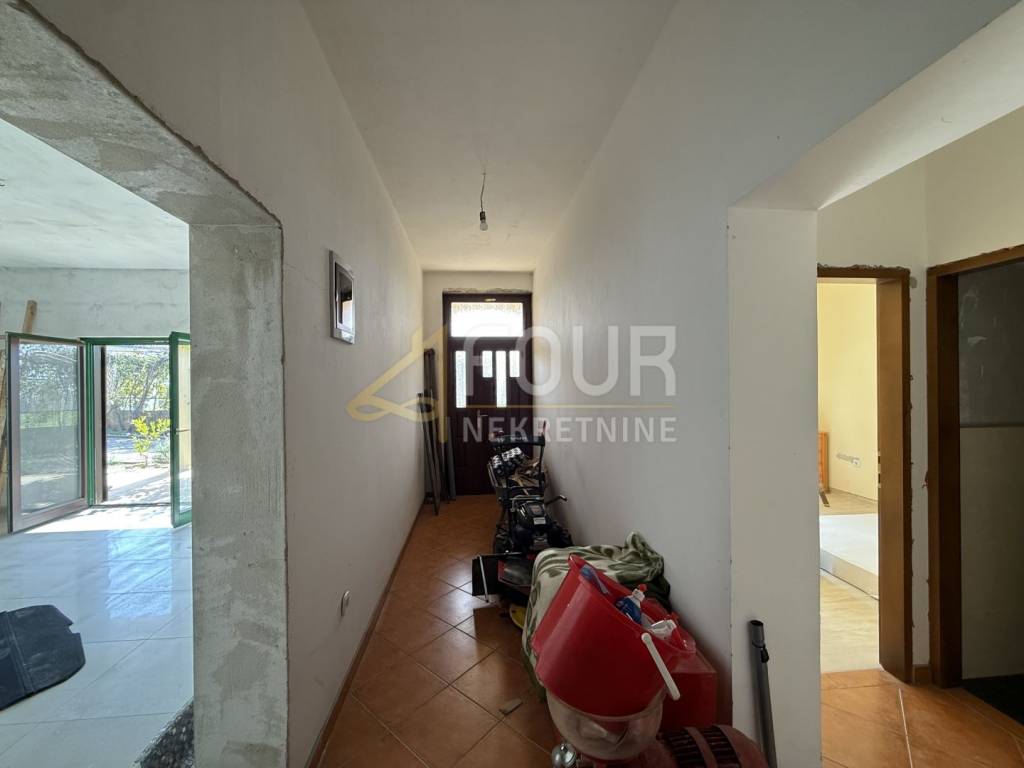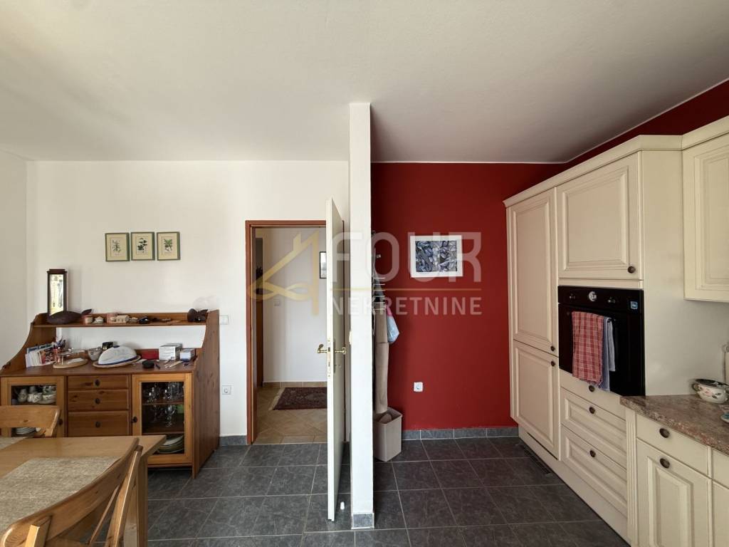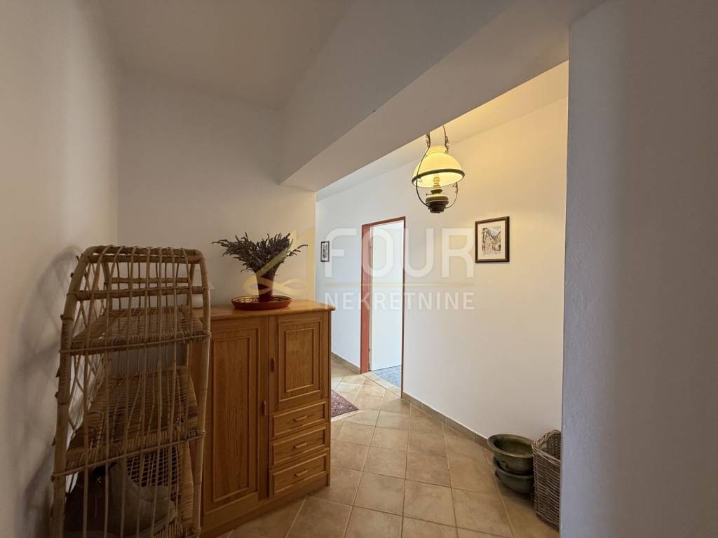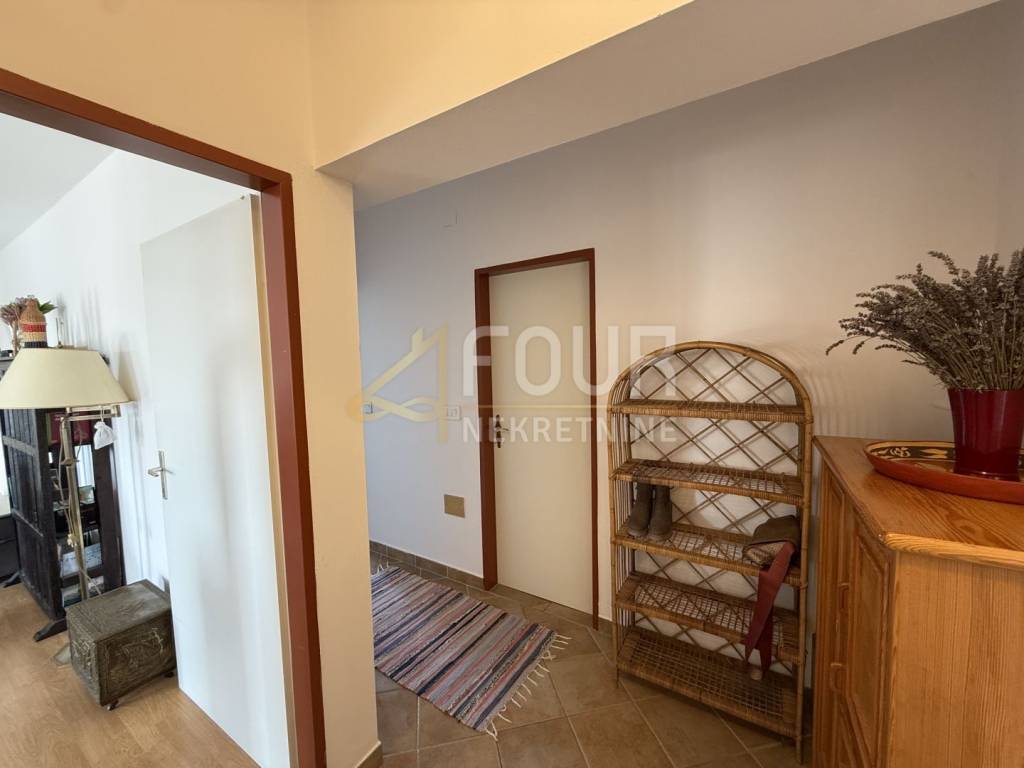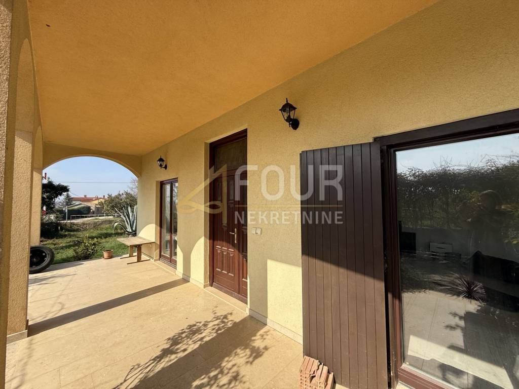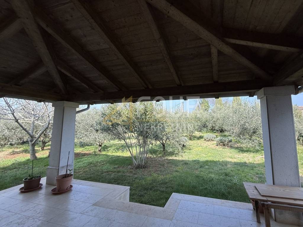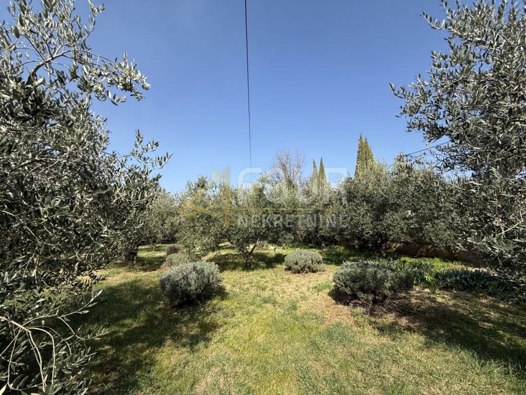 Detached house in Galižana with sea view and Pula is located in a quiet environment of family houses, on a plot of 1356 m2 with a spacious courtyard, Mediterranean plants, and 22 olive trees. Nearby there are a shop, café, and church, while the sea and Pula are about 6-7 km away.