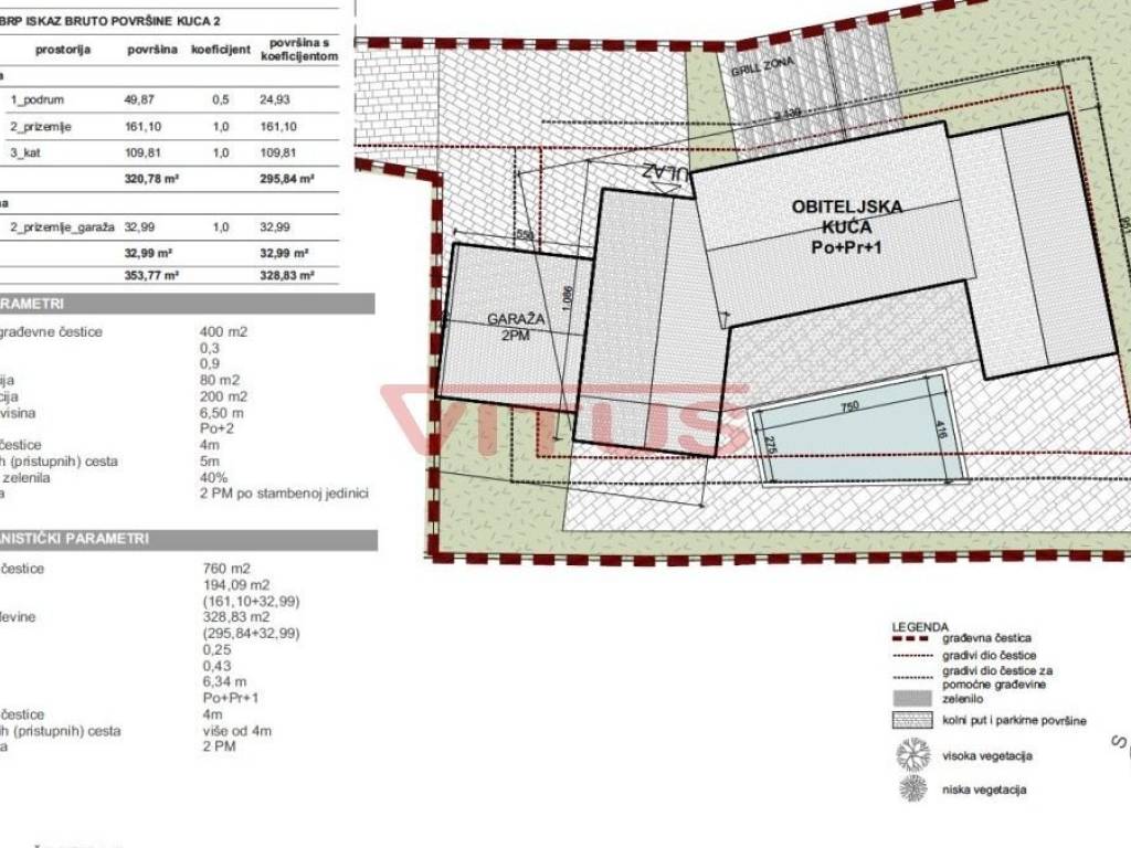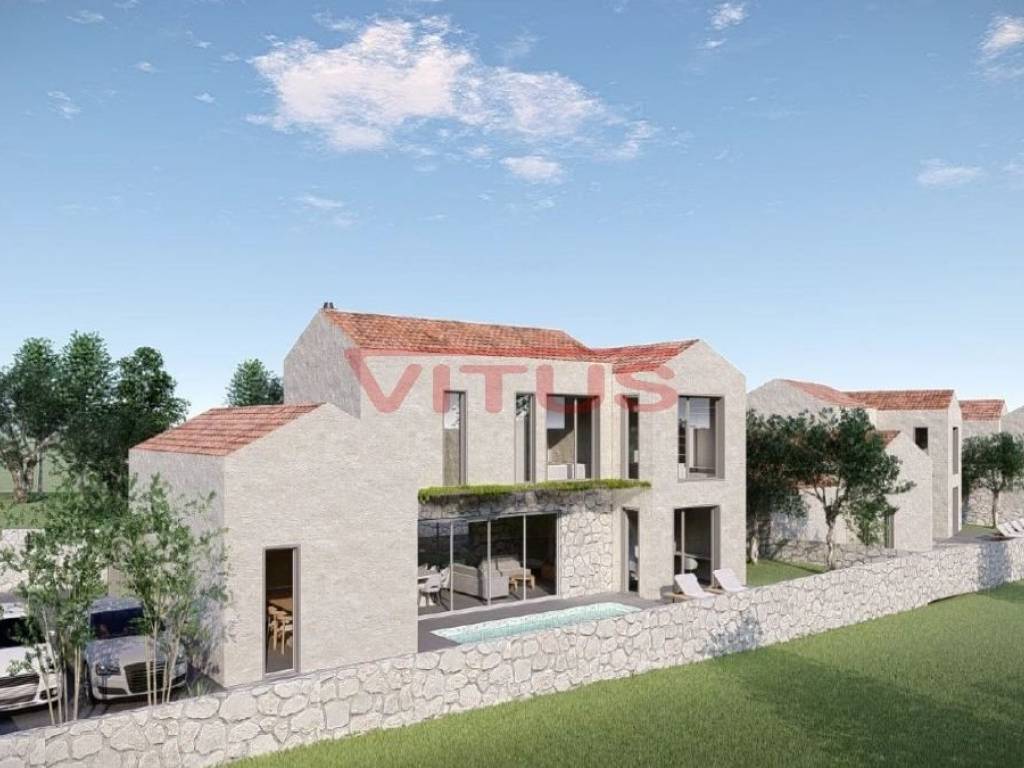 Atraktivno građevinsko zemljište površine 2038 m2, s projektnom dokumentacijom za izgradnju tri urbane mediteranske vile površine 227,44 m2, 328,83 m2 te 322,13 m2, s bazenima, garažom i okućnicom, nalazi se u okolici Vrbnika. U mirnoj, zelenoj oazi, udaljena od mora i centra Vrbnika 4000 m!