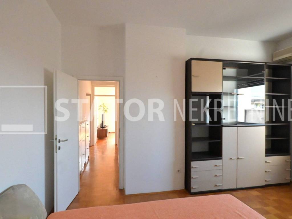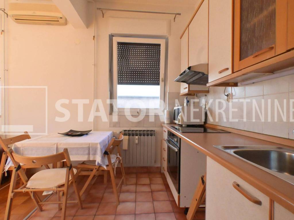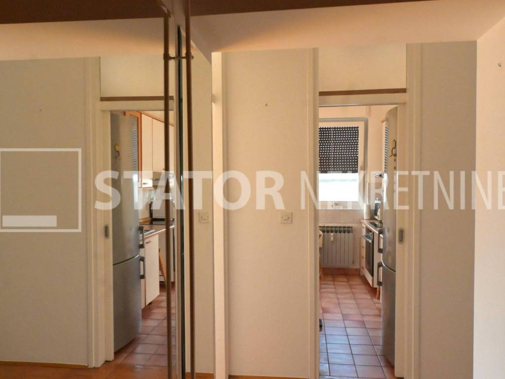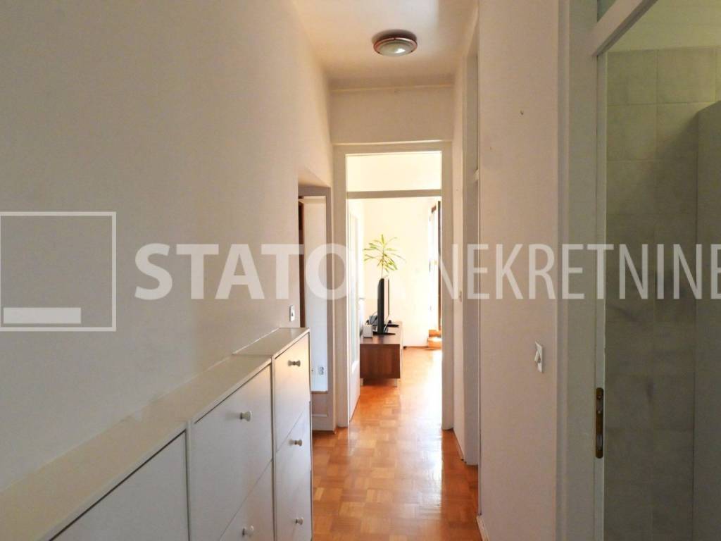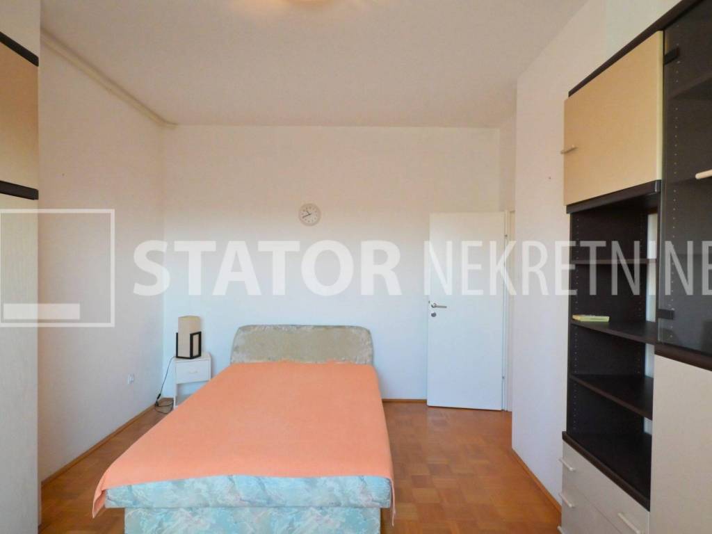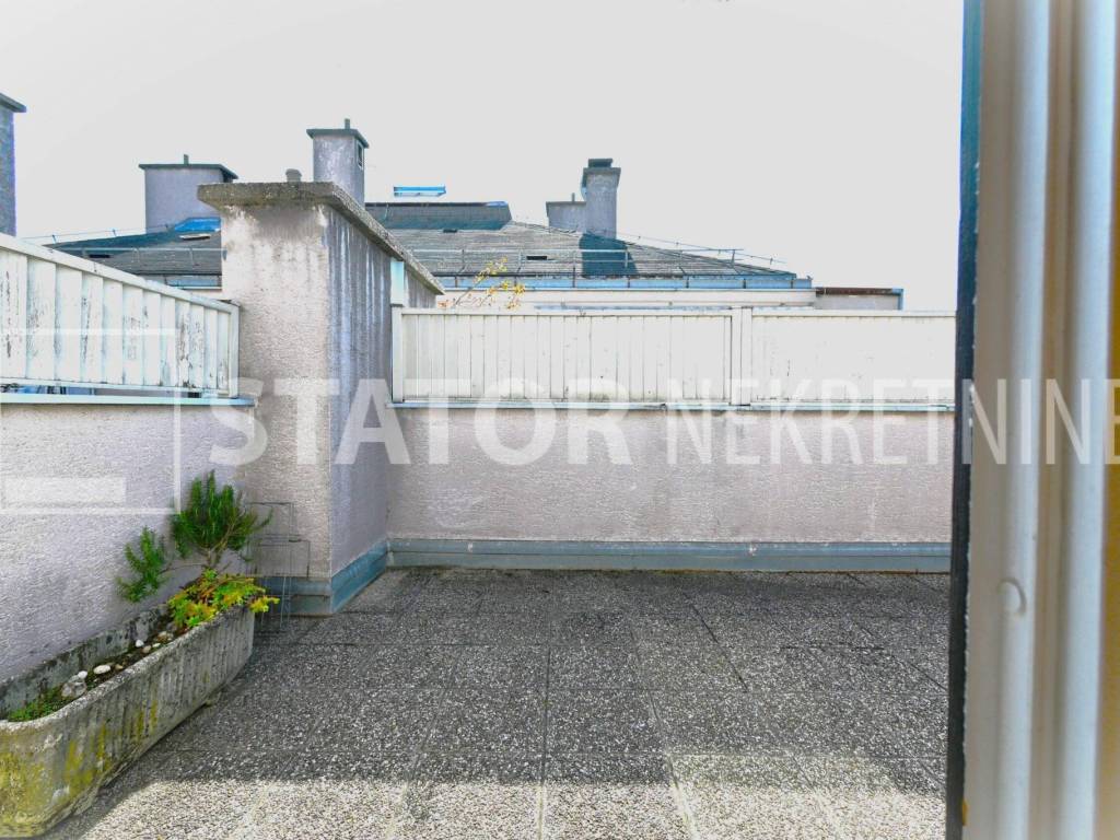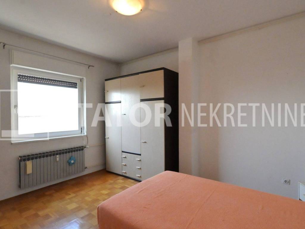 MALEŠNICA, prodaje se trosobni stan odličnog tlocrta na 4. katu zgrade bez lifta. Sastoji se od ulaznog hodnika u L, na lijevo spavaće sobe i dnevnog boravka koji ima izlaz na terasu ( 20m2) i loggu koja se proteže cijelom dužinom stana. Ravno od ulaza je kuhinja u koju se također može ući i iz dnevne sobe. Desno od ulaza je kupaonica i druga spavaća soba. Velika terasa i logga nemaju pogled na ostale stanove što ovom stanu daje privatnost i mir. Stan je uredno održavan i prodaje se sa namještajem. Iznad stana je kosi krov, visina stropa je 290cm. U podrumu je pripadajuća ostava. Grijanje na toplanu, jedna klimatska jedinica je u dnevnoj a duga u spavaćoj sobi. U neposrednoj blizini su marketi, autobusna stanica, na nekoliko minuta i željeznička stanica.