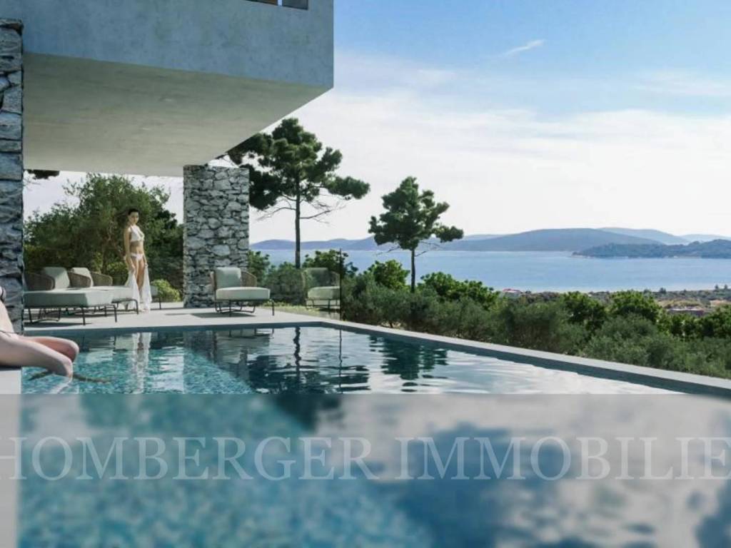 Exclusive real estate of high quality, built in the Mediterranean style, in a quiet environment at a height with a beautiful view of the sea, in Vodice. A modern combination of traditional, Mediterranean elements and large glass fronts, with spacious terraces, verandas with infinity pool. Start of construction 09/22, occupancy by 07/01/2023. During the construction phase, the buyer can reserve the property and pay after construction. We provide a detailed description of construction materials and installed equipment to registered customers upon request. In the construction phase, there is the possibility of joint decision-making in the details. approx. 300m2 of living space in three levels BASEMENT with wellness GROUND FLOOR - with an open area of the living room - kitchen and dining room and Master bedroom - a spacious terrace FLOOR: with three master bedrooms with built-in wardrobes ... WILL FULFILL ALL YOUR WISHES and EXPECTATIONS