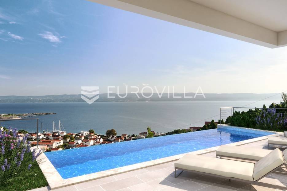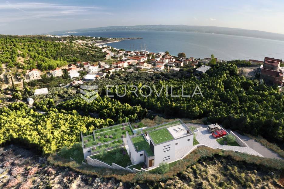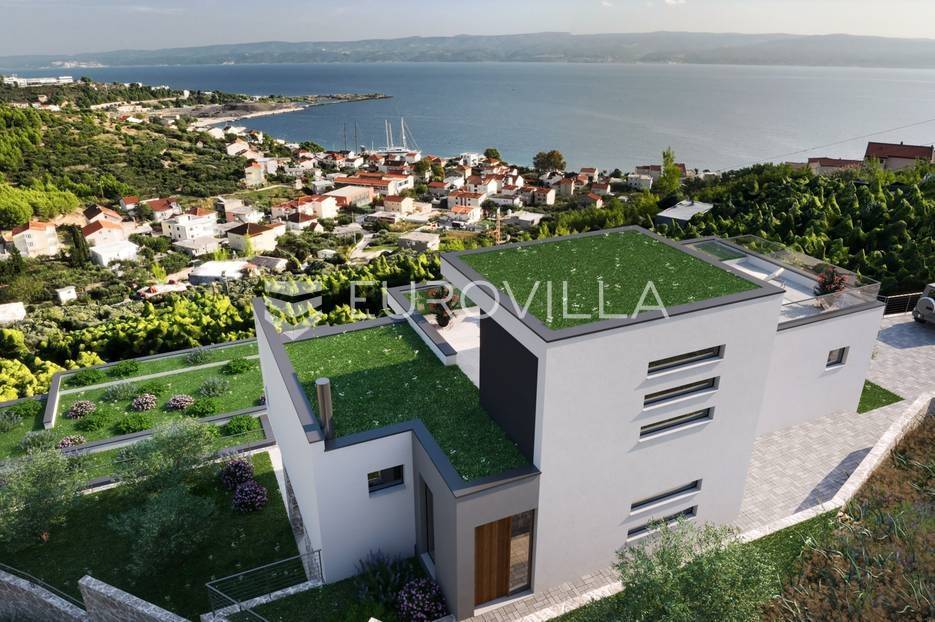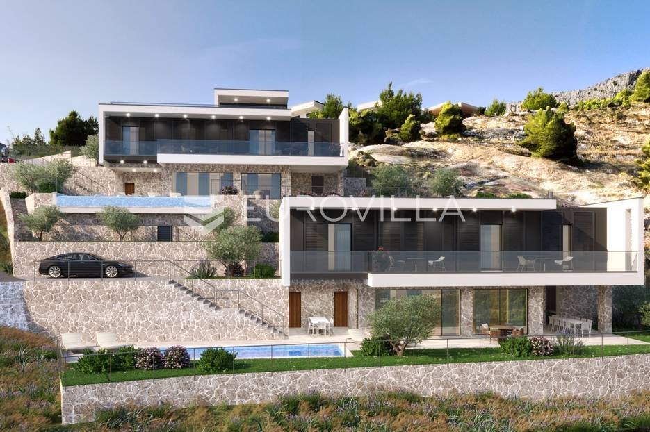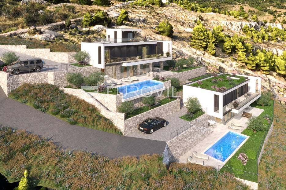 Jesenice, Mali rat, luksuzna vila modernog dizajna s pogledom na more, ukupne površine 276 m2.Vila je trenutno u izgradnji, u roh bau fazi, a projektirana je na dvije etaže.Na prvoj etaži nalazi se kuhinja, blagovaonica i dnevni boravak otvorenog koncepta, spremište, gostinjski WC, tehnička soba, vanjski WC, ljetna kuhinja, lounge zona te bazen površine 28 m².Na drugoj etaži predviđene su četiri spavaće sobe, svaka s vlastitom kupaonicom, praonica rublja, predprostor i hodnik.Poseban dodatak ovoj nekretnini je prohodna krovna terasa površine 67 m², idealna za uživanje u pogledu na more i okolni krajolik.Na razini prizemlja osiguran je vanjski parking za nekoliko automobila.Vilu karekterizira panoramski pogled na more i otok Brač iz svih prostorija, te atraktivni bazen sa svim pratećim sadržajima. Ovo izuzetna nekretnina modernog i nesvakidašnjeg dizajna, vrhunske kvalitete gradnje i opreme, idealna je za luksuzan život ili kao investicija za turistički najam.Predviđeni završetak radova planiran je nakon ljeta 2026. godine.Sve dodatne informacije dostupne su na upit.... Više na eurovilla.hr, ID: 575067
