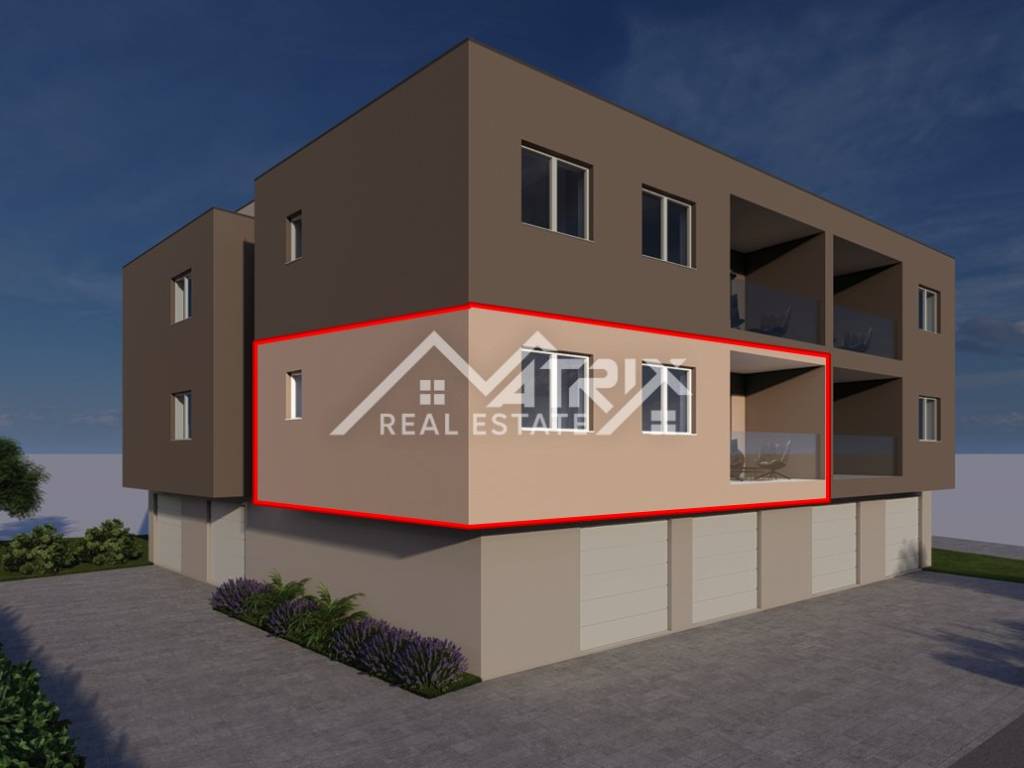We offer an apartment on the 1st floor of a new development in the centre of Peroj, in a quiet area yet close to the sea and beaches. The apartment is located on the 1st floor of a building with a total of 2 floors, in a smaller building with only 6 apartments—ideal for a calmer and more private lifestyle. The apartment is thoughtfully designed for comfortable living and a functional layout, and it offers views of the sea and the Brijuni Islands. The apartment’s living area is 58.42 m², and it comes with a garage on the ground floor of the building measuring 18 m². Together, the apartment and garage total 76.42 m².