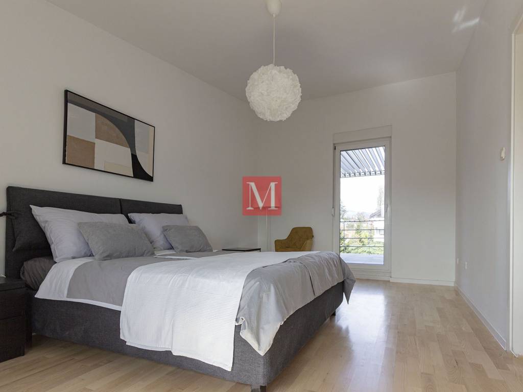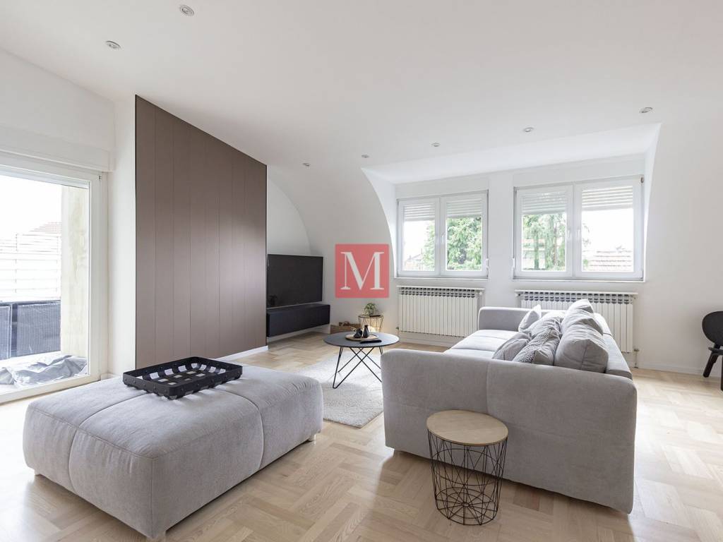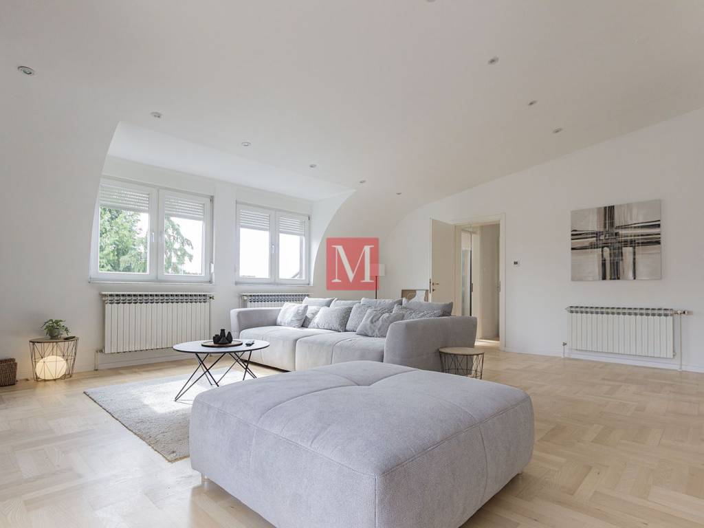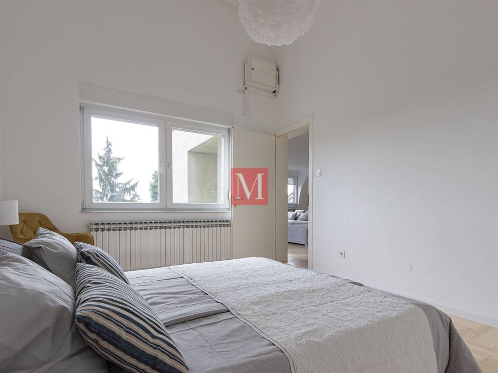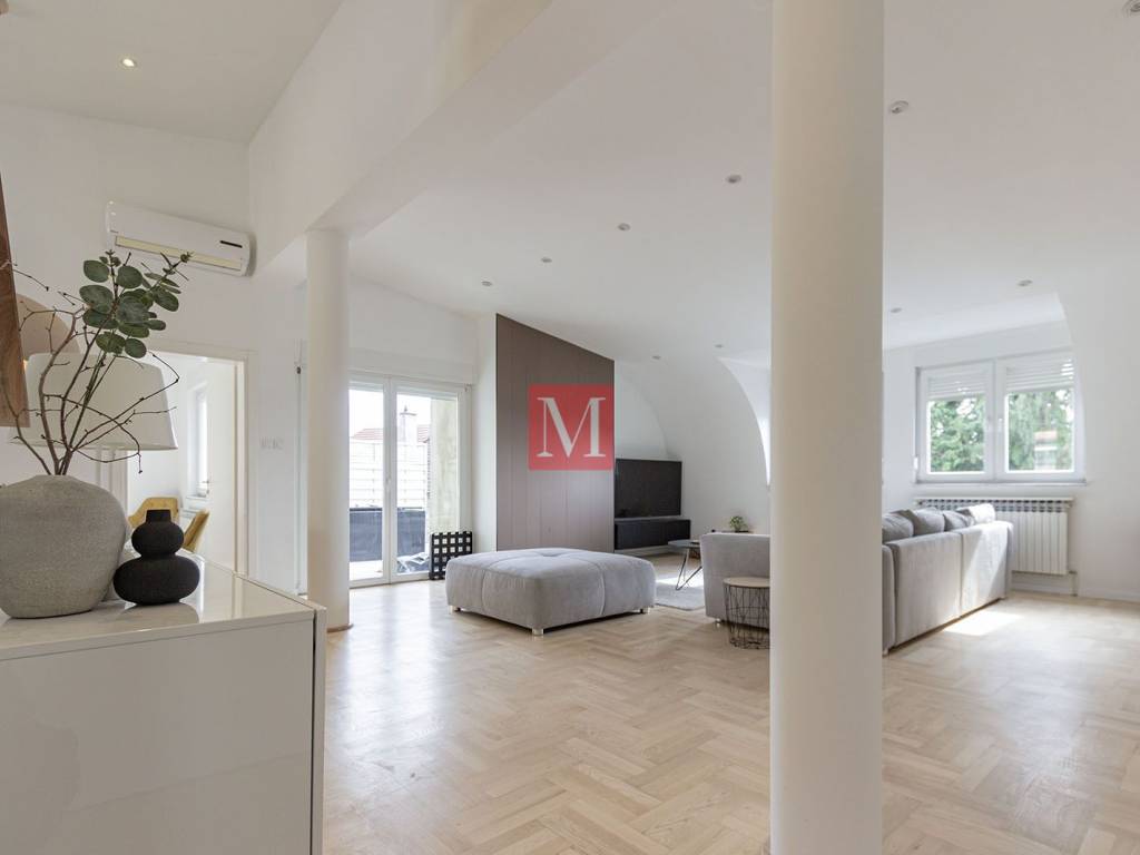 Beautiful and spacious newly renovated 160 m penthouse located on the second floor of an urban villa in an excellent location near Bijenička Road. The apartment consists of an entrance hallway, an exceptionally spacious open-space living room with kitchen and dining area, two bedrooms, each with access to its own terrace, a walk-in closet, a utility/storage room for household appliances, and two bathrooms. The apartment was recently renovated at the beginning of 2026. The rental price includes one covered parking space in front of the house. An additional advantage of this apartment is its quiet location, while still being only a 5-minute drive from the city center. Agency recommendation. Agency fee: 1 months rent + VAT.