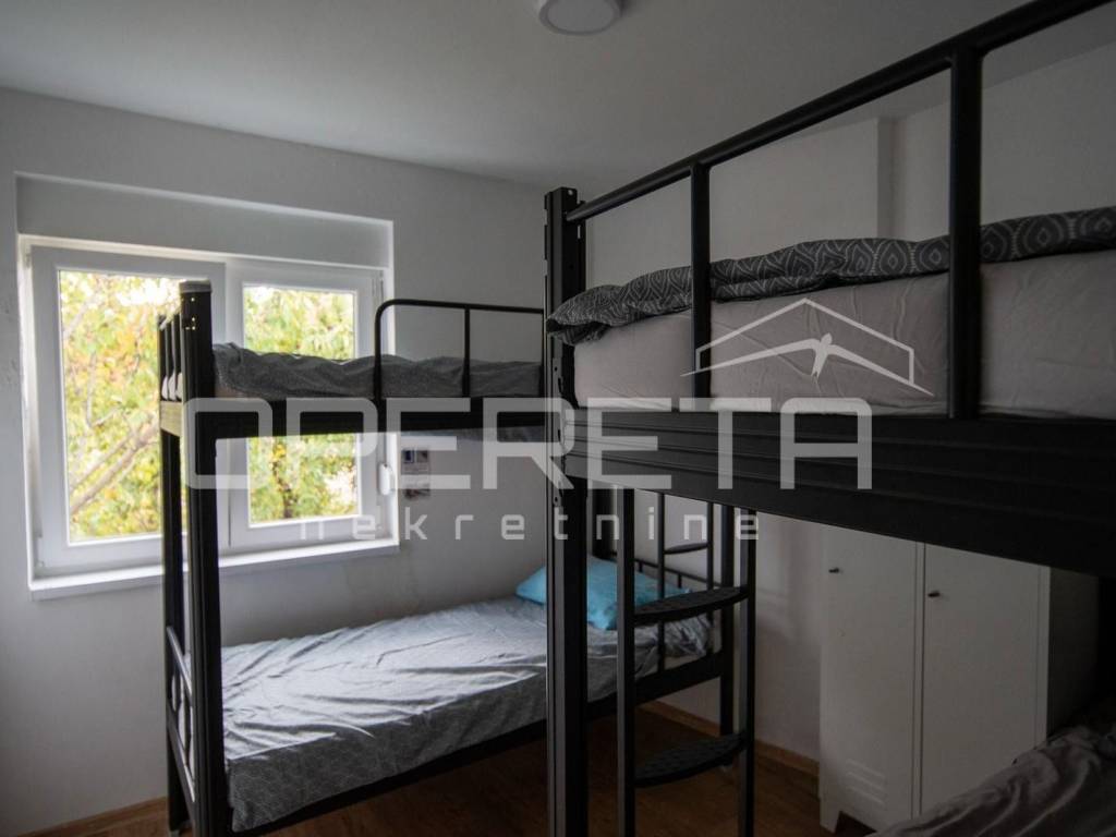 Kuća, prodaja, Zagreb, Črnomerec, Donja Kustošija, 137,84m2 bruto površine Prodaje se kuća na dvije stambene etaže povezana unutarnjim stepeništem. U prizemlju su smješteni kuhinja s blagovaonicom i boravkom, spavaća soba i kupaonica. Na katu je smještena kuhinja s blagovaonicom s izlazom na balkon, tri sobe i kupaonica. Kuća može funkcionirati kao jedna cjelina ili dva odvojena stana. Trenutačno je u funkciji smještaja za radnike te se najam može preuzeti i nastaviti. Parking za dva automobila na parceli. Donji dio kuće je renoviran 2005. godine, a gornji je izgrađen 2025. godine.