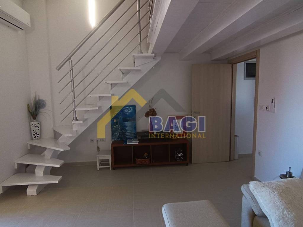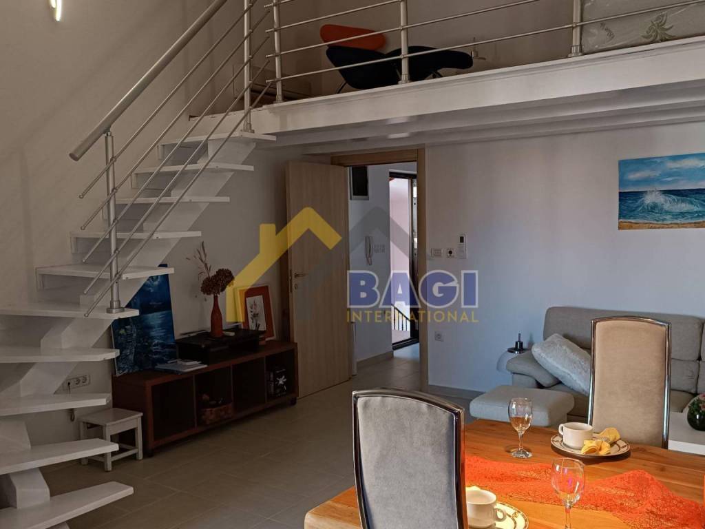 The apartment has a separate entrance with its own enclosed staircase finished with stone. The building was constructed with high-quality materials, featuring a double wall (30 + 30 cm) between neighboring apartments, ensuring excellent privacy and sound insulation. The apartment is equipped with underfloor heating, air conditioning, and a chimney.