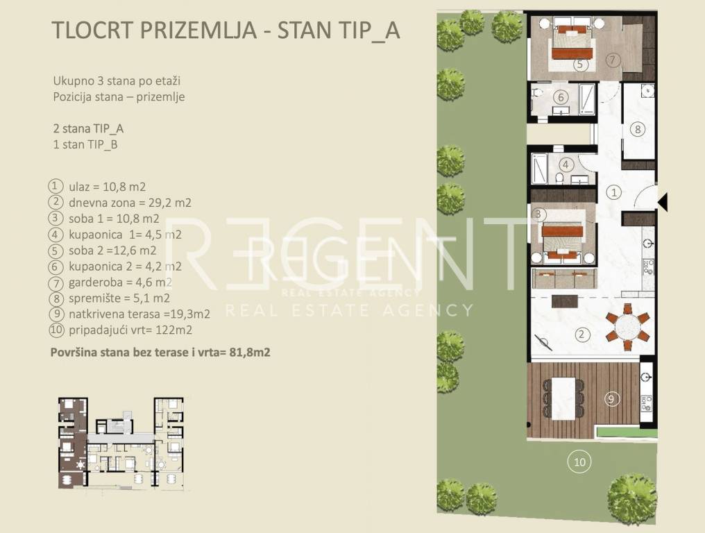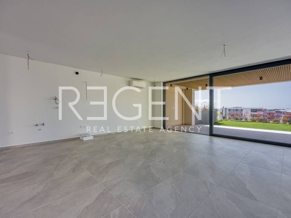 Представляем вам проект роскошных апартаментов в жилом районе Новиграда, рядом с морем и другими удобствами. Новиград имеет хорошее транспортное сообщение со всеми частями Истрии, а также с соседними странами, а автомагистраль находится всего в 5 минутах езды. Здание расположено в самой высокой точке Видала, в окружении новых зданий с видом на море. В этом роскошном жилом комплексе расположена трехкомнатная квартира на первом этаже здания. Квартира имеет закрытую жилую площадь 81,8 м2. С крытой террасой (9,65 м2), садом (12,20 м2), кладовой (3,83 м2), парковочным местом (2,50 м2) общая площадь составляет 109,98 м2. Квартира состоит из: прихожей, гостиной с кухней и столовой, двух спален с собственными ванными комнатами, гардеробной, кладовой, крытой террасы и сада. В квартире есть гаражное место и кладовая. ИНТЕРЬЕР КВАРТИРЫ: Интерьер : Сочетание эстетики, функциональности и комфорта. Современный стиль соответствует последним тенденциям в дизайне интерьера, с акцентом на достойные и ненавязчивые детали, обогащенные теплыми оттенками натуральных цветов. В небольших квартирах две спальни и одна ванная комната, а в больших квартирах две спальни с ванными комнатами и отдельным туалетом. Во всех квартирах, независимо от площади, гостиная представляет собой открытую планировку, которая соединяет кухню, столовую и гостиную в единое целое с выходом на просторную террасу. Помимо комфорта, большое внимание уделяется безопасности объекта. Во всех квартирах установлены охранные и противопожарные двери, а алюминиевые окна с тройным стеклопакетом оснащены автоматическими рольставнями и жалюзи на лоджиях. Сочетание традиционных материалов и современного дизайна оставляет впечатление роскоши, подчеркнутой такими деталями, как высокие потолки, качественная керамика для ванной комнаты, элегантные внутренние двери «filomuro» и паркет большого формата из дерева. Такой интерьер, в естественной текстуре и теплых оттенках, ненавязчиво излучает теплый прием, а чистые и прямые линии с большими стеклянными поверхностями дополнительно подчеркивают простор. Завершение строительства ожидается в 2025 году.