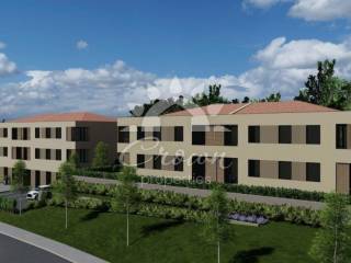 A two-bedroom apartment with a total area of 64.16 m² is for sale, located on the first floor of a modern residential building currently under construction in Barban. The apartment has a functional layout and consists of an entrance hall, a kitchen with dining area and living room, two bedrooms, and a loggia.