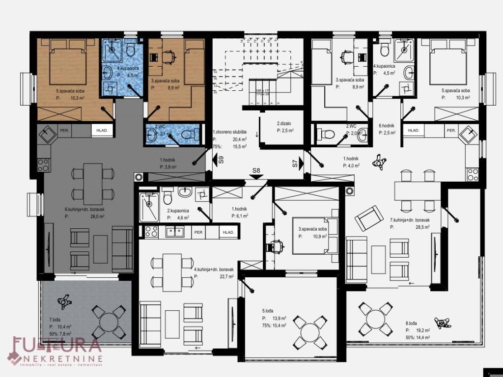 Gledati tlocrt stan oznake S9.