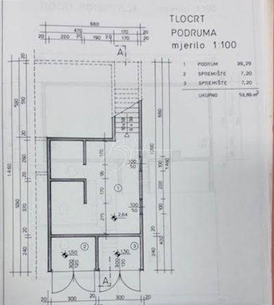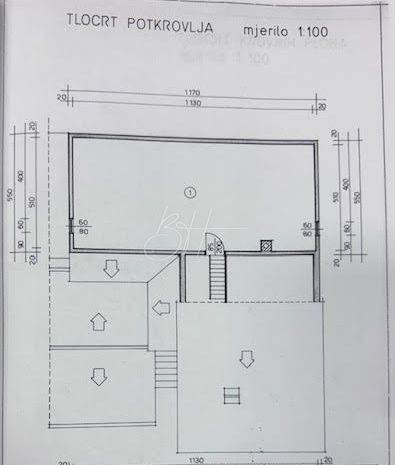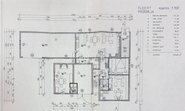 The plot includes 500 m² of urbanized land and 880 m² of agricultural land, on which there is a landscaped olive grove. The plot has a garage and an additional building of 64 m², which provides additional possibilities for using the space.