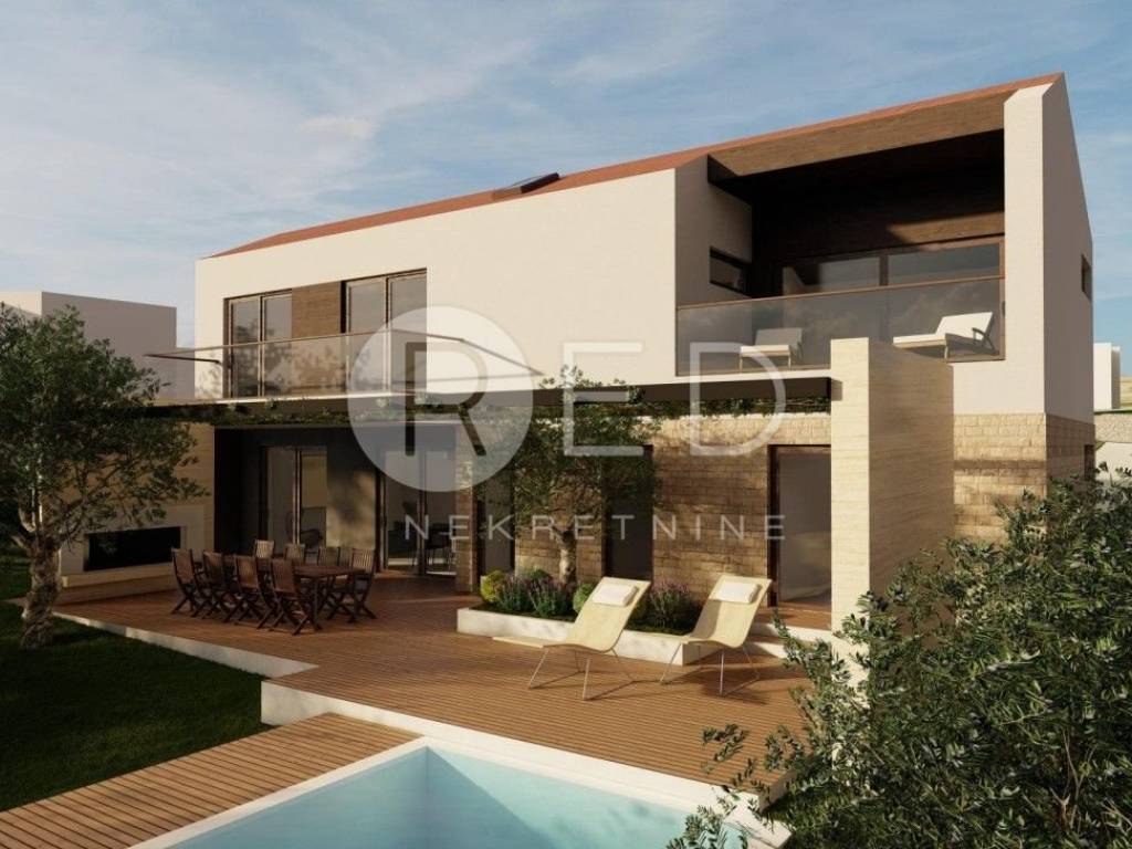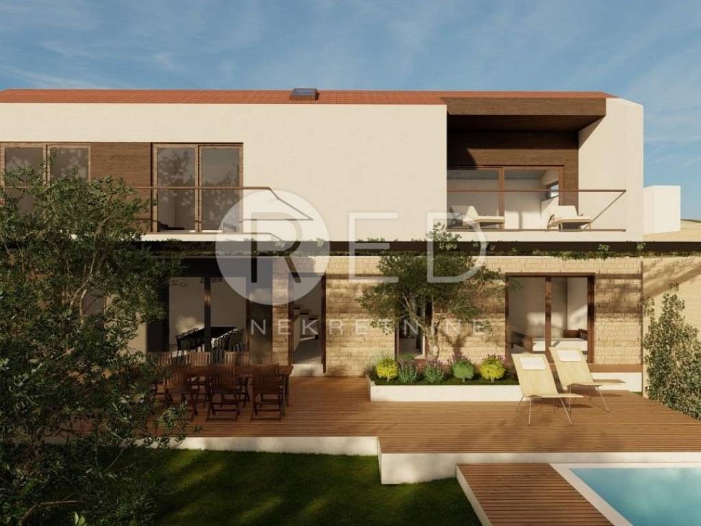 - 4 prostrane spavaće sobe - 4 kupaonice - dodatnog WC za goste - open space dnevnog boravka, blagovaonice i kuhinje - prostrano sunčalište i pergolu ispred kuće, neposredno uz bazen - grijani bazen dimenzija 7,5 × 3,5 m