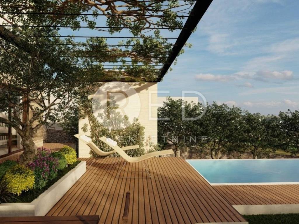U cijenu je uključena pravomoćna građevinska dozvola, zemljište i vrhunski arhitektonski projekt za vilu s bazenom, ukupne neto površine cca 170 m².