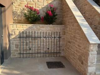 There are parking spaces for several cars in the courtyard. The garden is cultivated with Mediterranean ornamental plants, the olive tree is a symbol of peace, abundance, eternity, learning, and since ancient Greece it has symbolized victory.