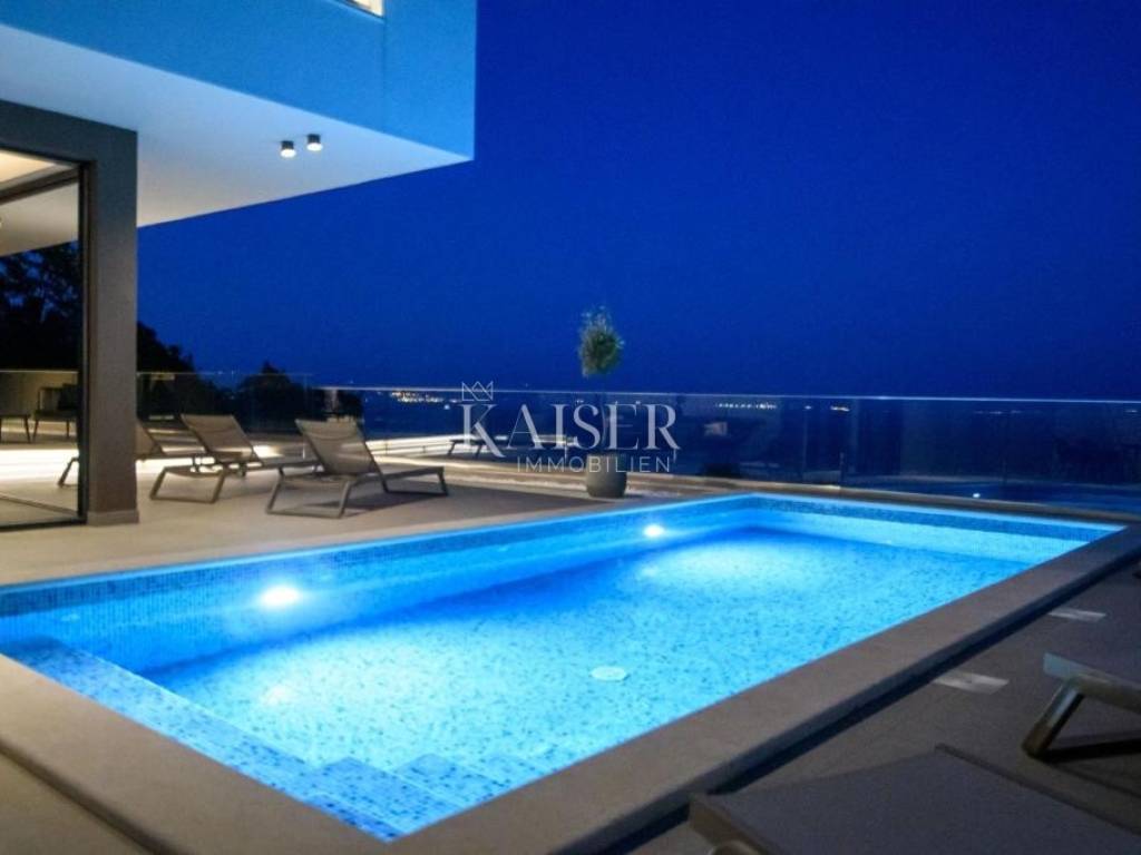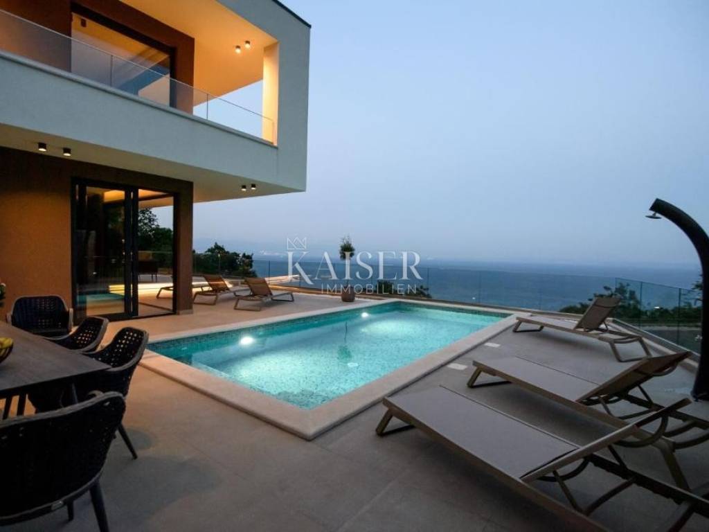 Kaiser-immobilie offers a newly built villa with a swimming pool near Lovran, which is only 400 m from the sea and is ideal for those looking for luxury, comfort and a panoramic view of the Kvarner Bay.