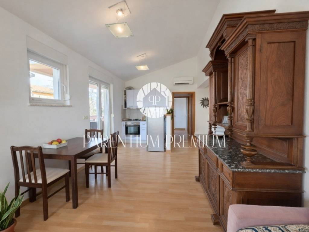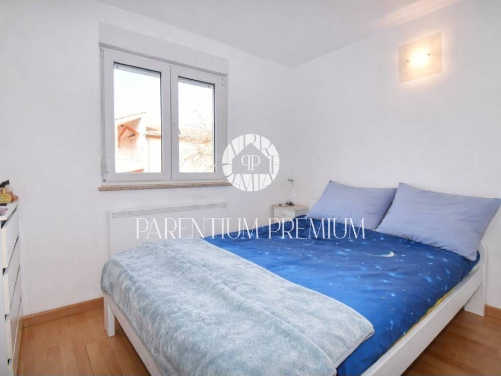 Poreč Surroundings | One-bedroom apartment with sea view | approx. 50 m For sale is a bright and functional apartment located on the first floor of a small residential building in a quiet area near Poreč. The apartment of approx. 50 m consists of: open-plan living room with kitchen and dining area one bedroom fully renovated bathroom (2025) terrace with an open view of the surroundings and the sea Heating and cooling are provided by air conditioning, and a chimney allows the installation of a wood or pellet stove. The apartment includes one private parking space. The location is highly convenient only 4 minutes by car to the centre of Poreč and the sea. Ideal as a holiday home, investment property or for a couple.
