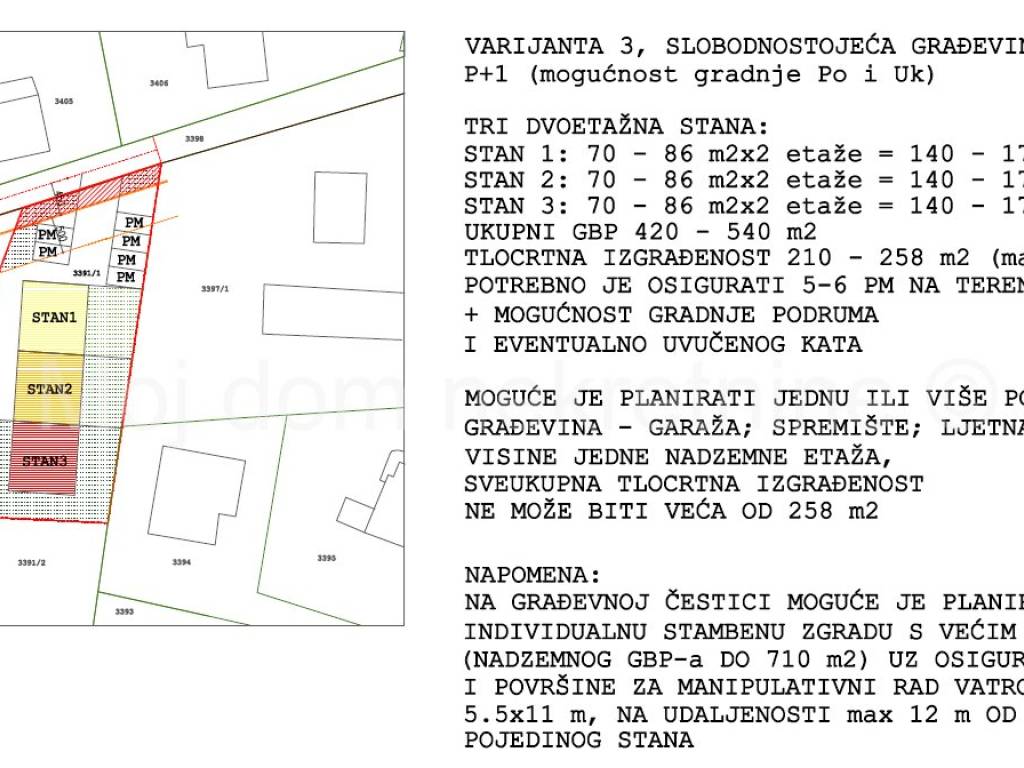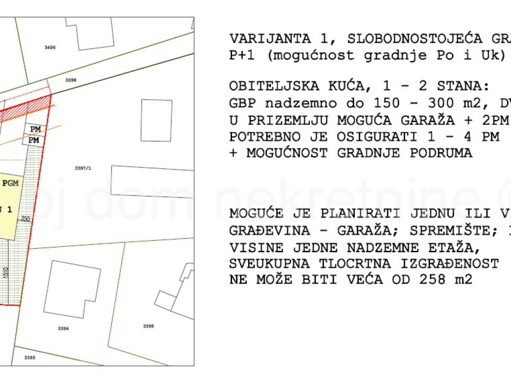BEZ PROVIZIJE ZA KUPCE! Uvijek najpovoljniji ! Prodaje se građevinsko zemljište od 861m2. Nalazi se u mirnoj ulici, po kojoj prolazi sva infrastruktura (struja, gradski vodovod i kanalizacija). Zemljište je ravno, a među fotografijama u oglasu su neke od mogućih varijanti gradnje. Uz zemljište se nalazi autobusna stanica. Prodaju se i susjedna dva građevinska zemljišta od 1350m2 po cijeni od 99.000 i 949m2 po cijeni od 89.000. Mogućnost kupnje jednog ili više zemljišta. Vlasništvo uredno Posrednik: Mislav Plavanjac, Moj dom nekretnine d.o.o. *USLUGE KREDITIRANJA* U suradnji s licenciranim kreditnim posrednicima olakšavamo Vam put do stambenog kredita pronalaskom najpovoljnijeg modela kredita za Vas. Kontaktirajte nas i prepustite se planiranju useljenja u svoj dom iz snova! *USLUGA ENERGETSKOG CERTIFICIRANJA* U suradnji s licenciranim energetskim certifikatorima nudimo Vam mogućnost usluge energetskog certificiranja Vaše nekretnine. Obratite nam se! Za sve dodatne informacije možete nas kontaktirati na broj mob.: 099/637-2727 ili na kontakte navedene u oglasu. Obratite se s povjerenjem! Cjelokupna ponuda nekretnina na www.mojdom-nekretnine.hr
