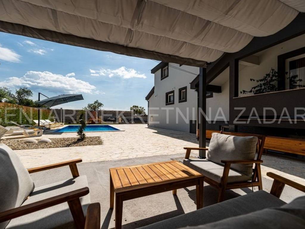 Exclusive, fully furnished villa with heated swimming pool for sale, located on a landscaped plot of 830 m in a quiet and private part of Zemunik Donji, at the end of a cul-de-sac. This superb 400 m property offers the perfect combination of luxury, comfort and security and represents an ideal opportunity for tourist rental or as an extremely profitable investment.