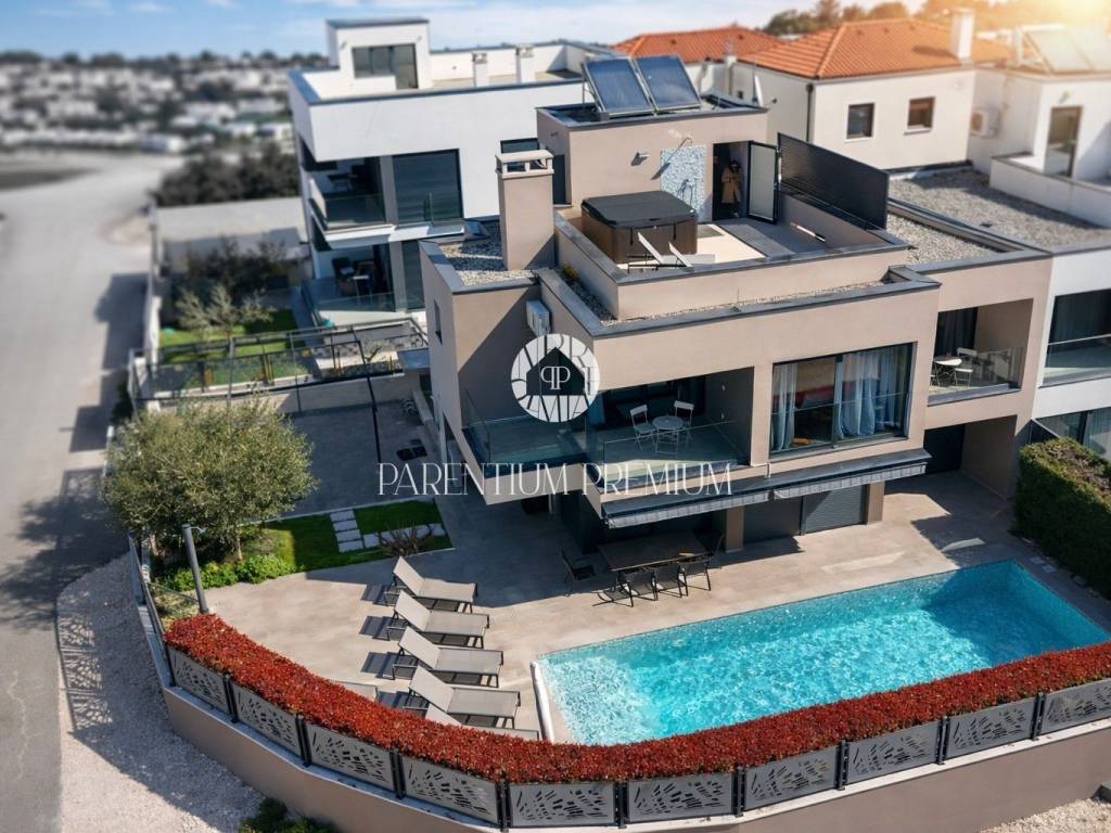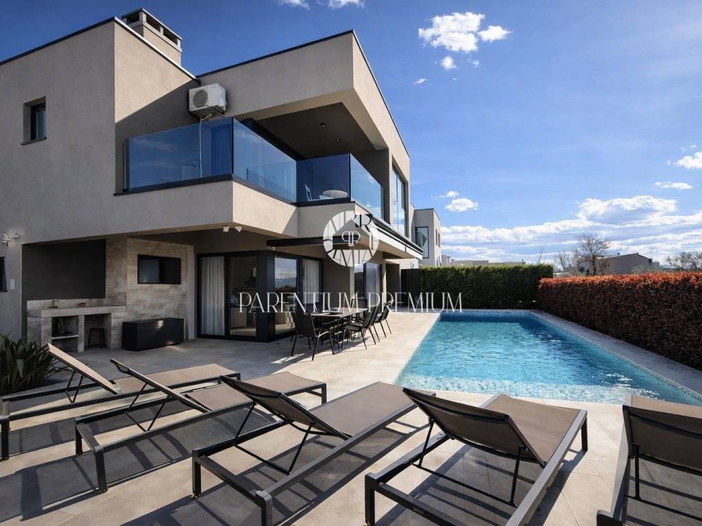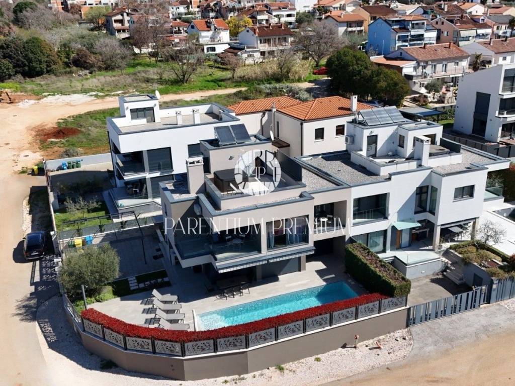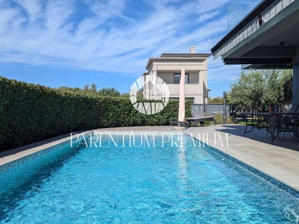 Located in one of the most desirable areas of Poreč, just 500 meters from the sea and beaches and 1.4 km from the city center, this modern luxury villa is for sale.