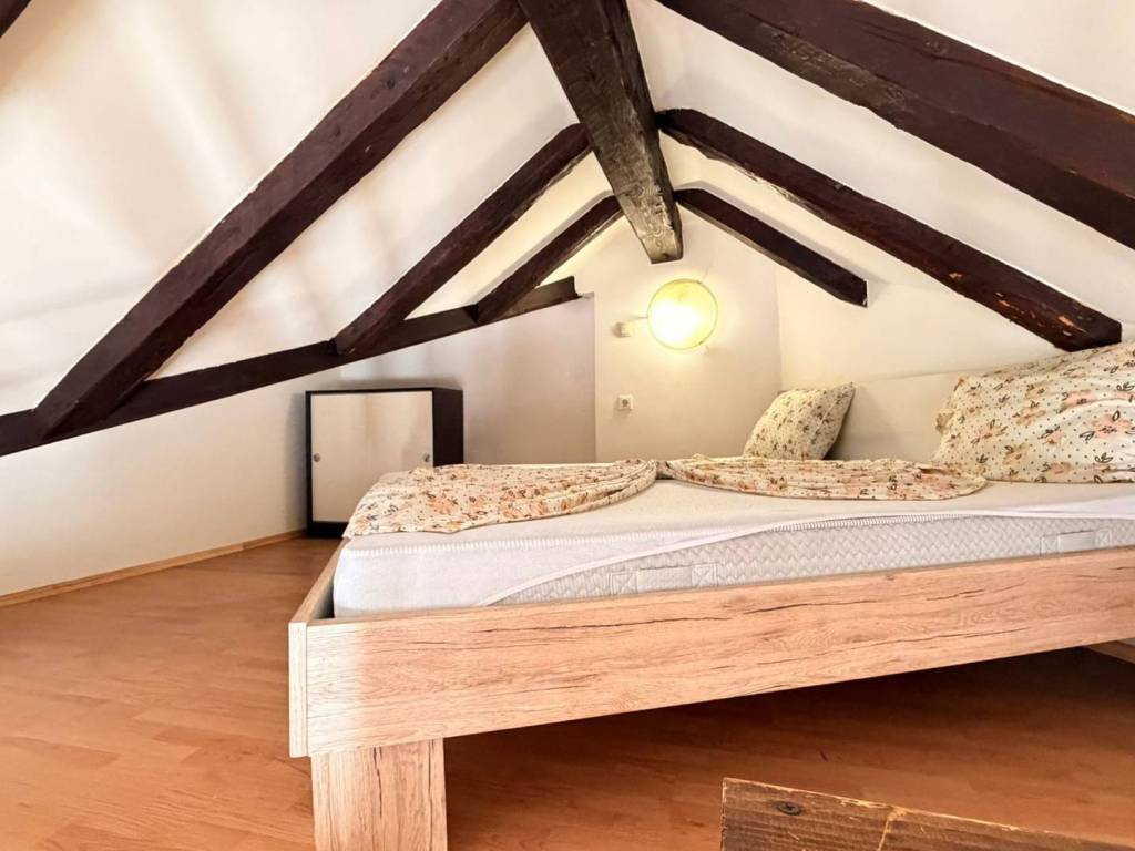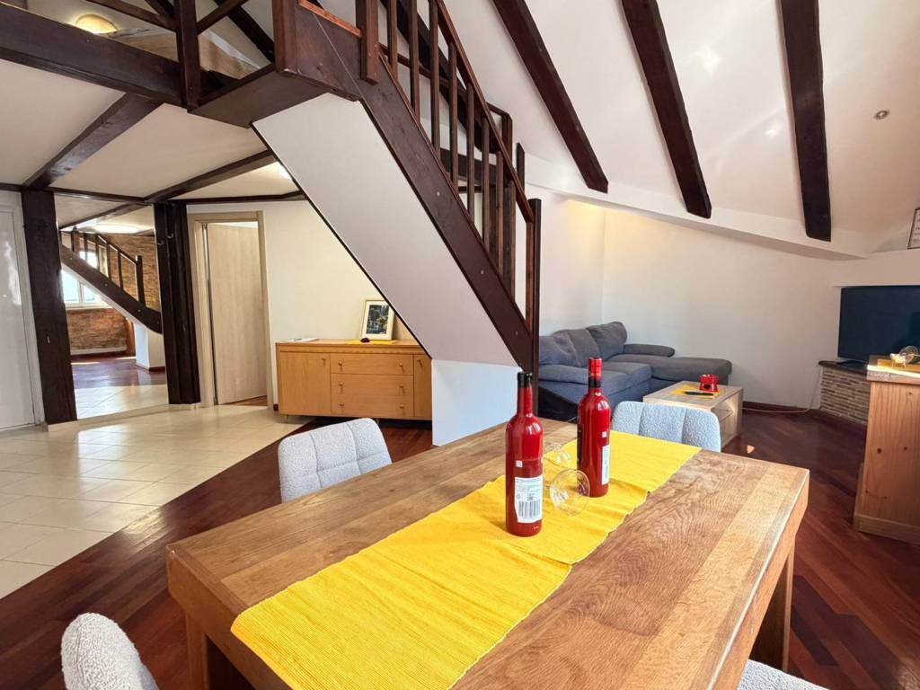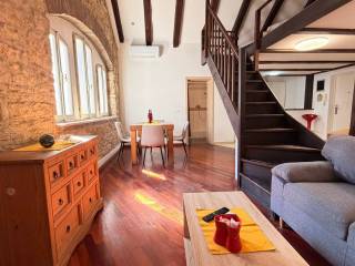 Prostire se na površini od 59,50 m2, koncipiran kao dvoetažni stan a sastoji se od lijepog otvorenog dnevnog prostora gdje se smjestila kuhinja, blagovaonica, ulazno predsoblje i dnevni boravak, kupaonica, spavaća soba te rustikalnim drvenim stepeništem prilazimo mezzaninu koji se koristi kao dodatna spavaća soba u potkrovlju,