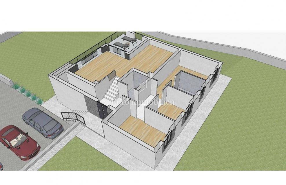 Nedaleko centra Labina, točnije 3 km od centra grada prodaje se građevinsko zemljište s dobivenom građevinskom dozvolom, projektom i plaćenim komunalijama.