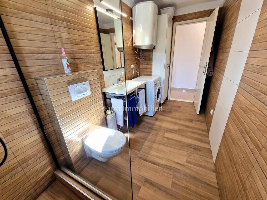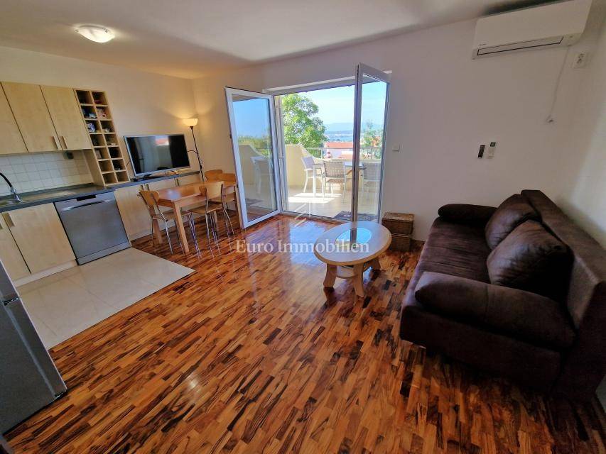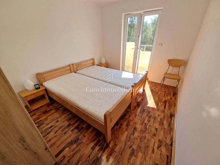 Comfortable apartment with sea view for sale! The apartment is located on the first floor of a multi-residential building and consists of an entrance hall, living room with kitchen and dining room, two bedrooms, bathroom and two covered terraces. The area of the apartment is 67 m2. The terrace offers a beautiful view of the sea. It is located in a good location, approx. 600 meters from all necessary amenities and 700 meters from the beach. The apartment is fully furnished and is being sold as such. One parking space is included in the price. More information on request!