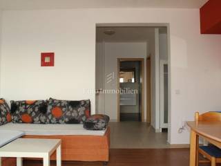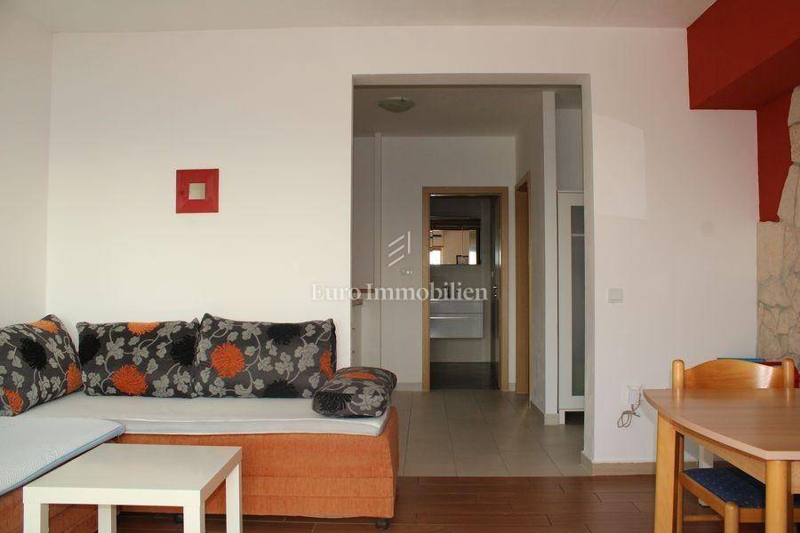 It is situated on the first floor, has a living area of 40 m², and consists of one bedroom, a kitchen, a bathroom, and a living room with access to a terrace offering a stunning open sea view. The apartment is modernly furnished and equipped, and is being sold as such. A parking space can be purchased for an additional fee.