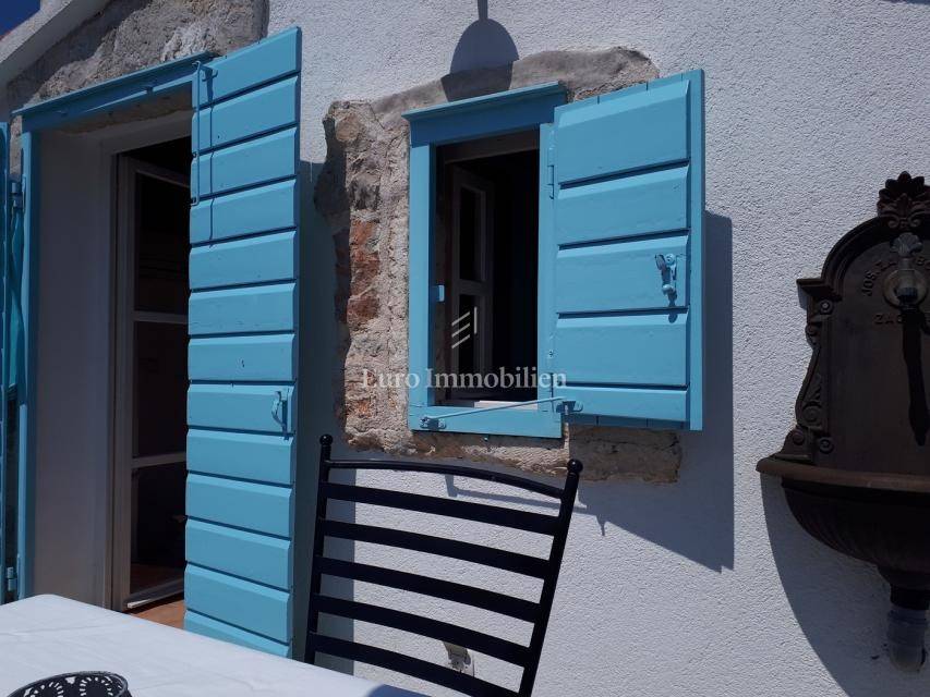 A beautifully renovated stone house for sale in a quiet location, in a street without traffic in Betina on the island of Murter. The house has a total gross area of approx. 100 m2 and extends over the ground floor, first and second floors. All floors are connected by internal stairs. The house has a kitchen and a living room, two bedrooms, a bathroom, a toilet and a small terrace at the top. The house is fully air-conditioned, modernly furnished and equipped with quality furniture. There is a public parking lot nearby.