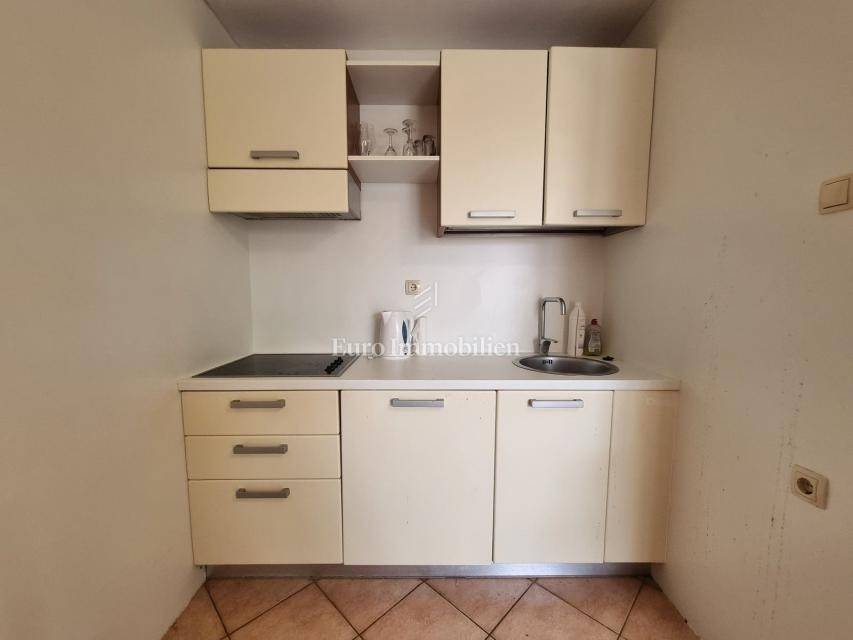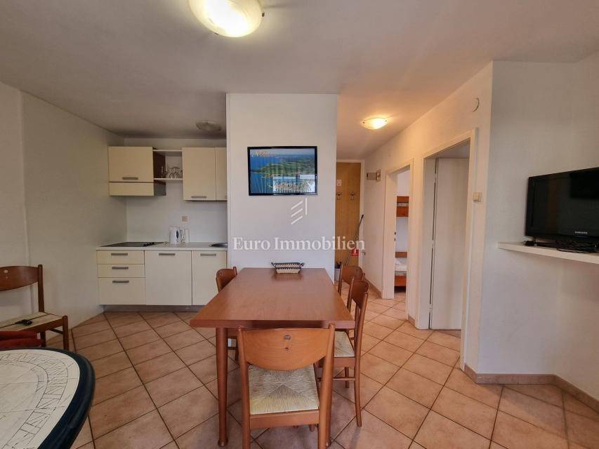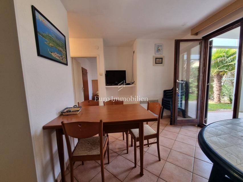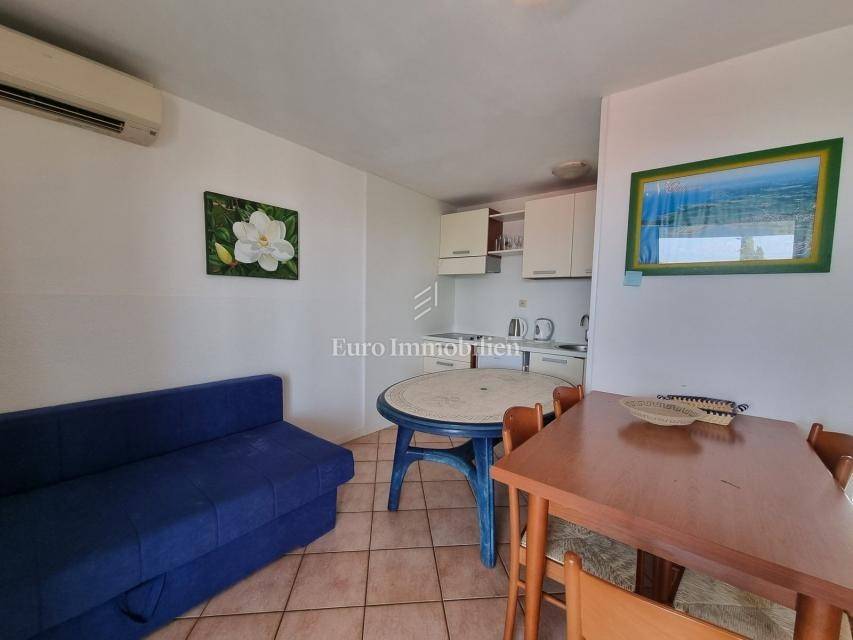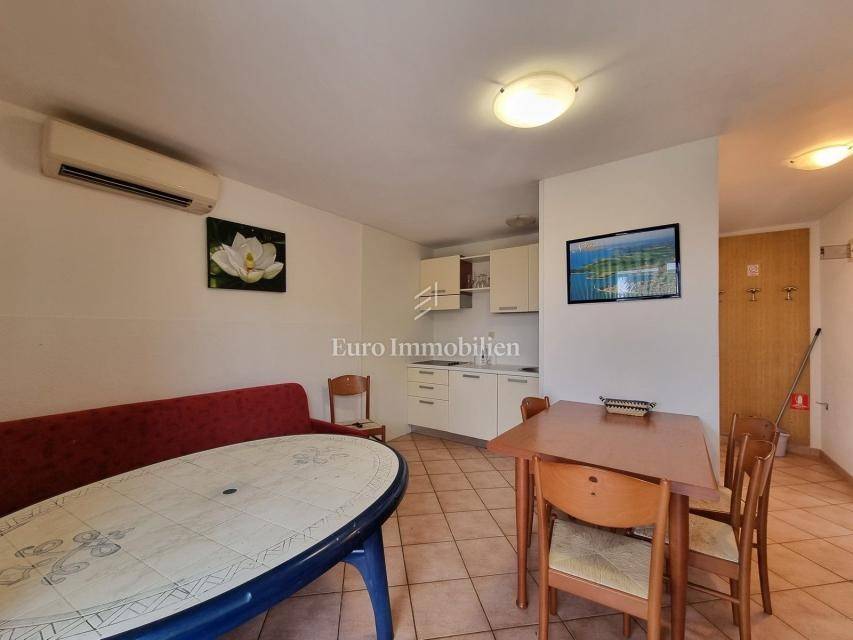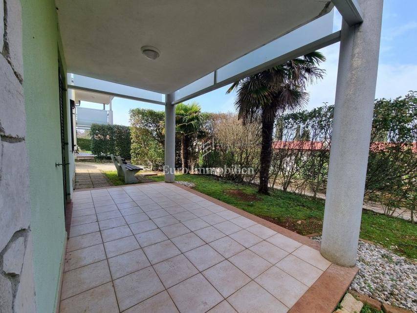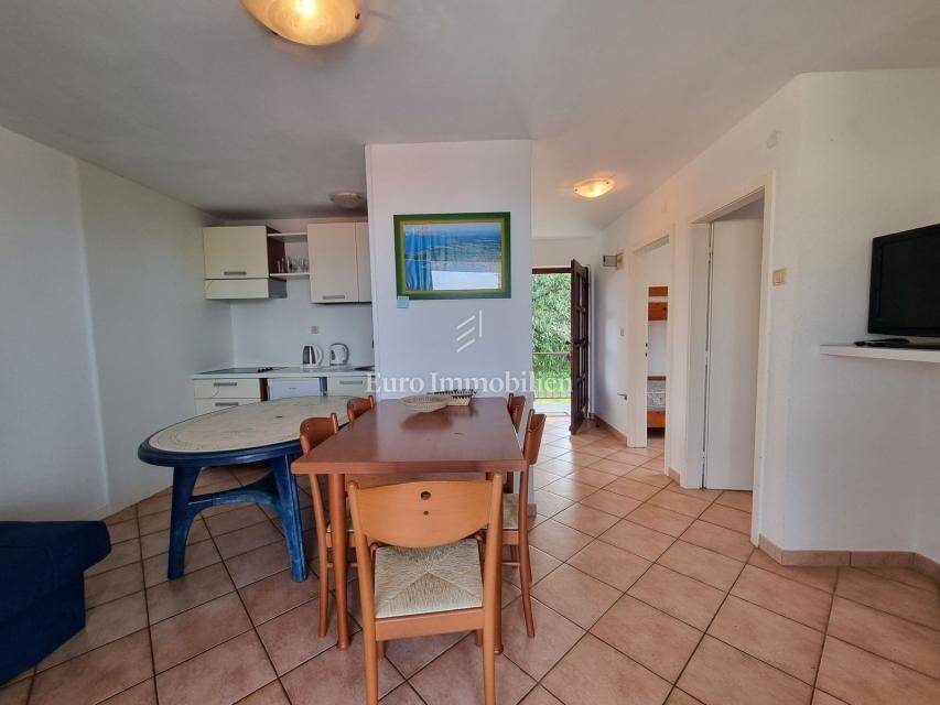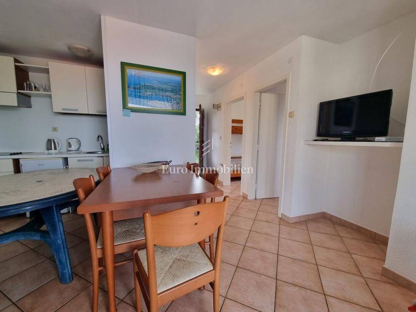 The house extends over the ground floor and first floor. On the ground floor there is an apartment of 59.61 m2 with a terrace, consisting of a hallway, two bedrooms, a bathroom, a living room with a dining room and a kitchen. From the living room there is access to a spacious covered terrace and garden. The external stairs lead to the apartment on the first floor of the same square footage and layout. From the first floor there is a beautiful view of the sea from the bedrooms, the living room and the balcony. The apartments need minor renovation, but they are functional and are rented for tourist purposes. Heating/cooling is via air conditioning. The house has 369 m2 of garden with a barbecue and parking.