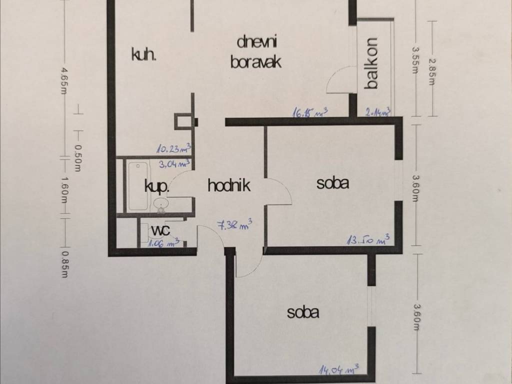 Stan je odlično koncipiranog rasporeda a obuhvaća ulazno predsoblje iz kojeg se ulazi u sve prostorije, dvije komotne spavaće sobe, kupaonica i toalet, kuhinja s blagovaonom i dnevnim boravkom otvorenog koncepta s izlazom na natkriveni balkon.