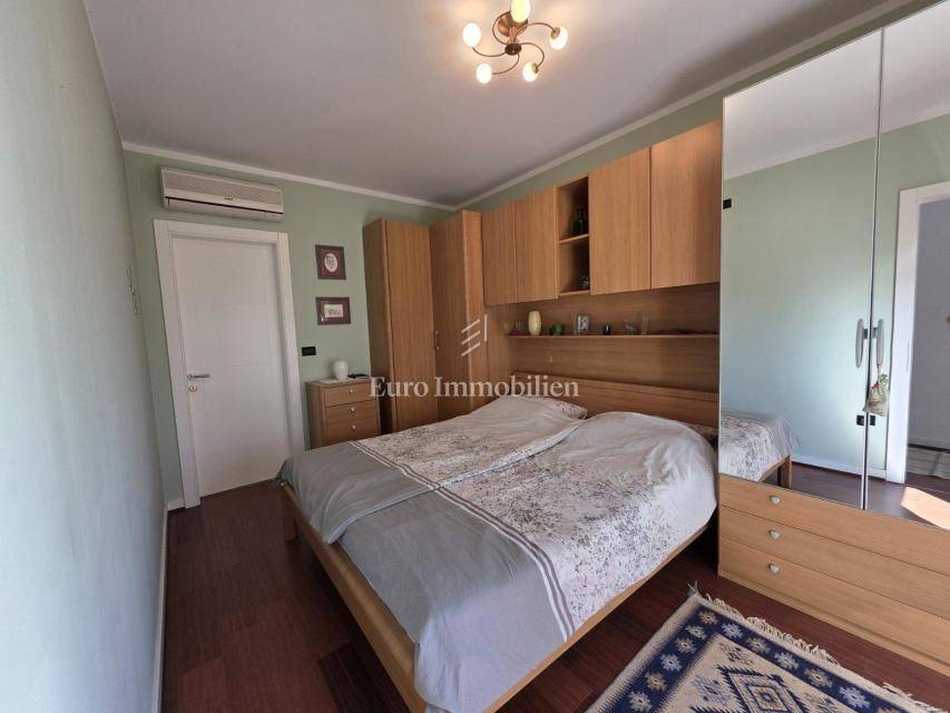 The apartment consists of two bedrooms, a hallway, a kitchen with a dining area, a living room, a toilet, a bathroom, a balcony, and a terrace with a beautiful sea view. It is fully furnished, air-conditioned, and equipped with underfloor heating. A storage room is available on the ground floor of the building, and a parking space is provided within the garden.