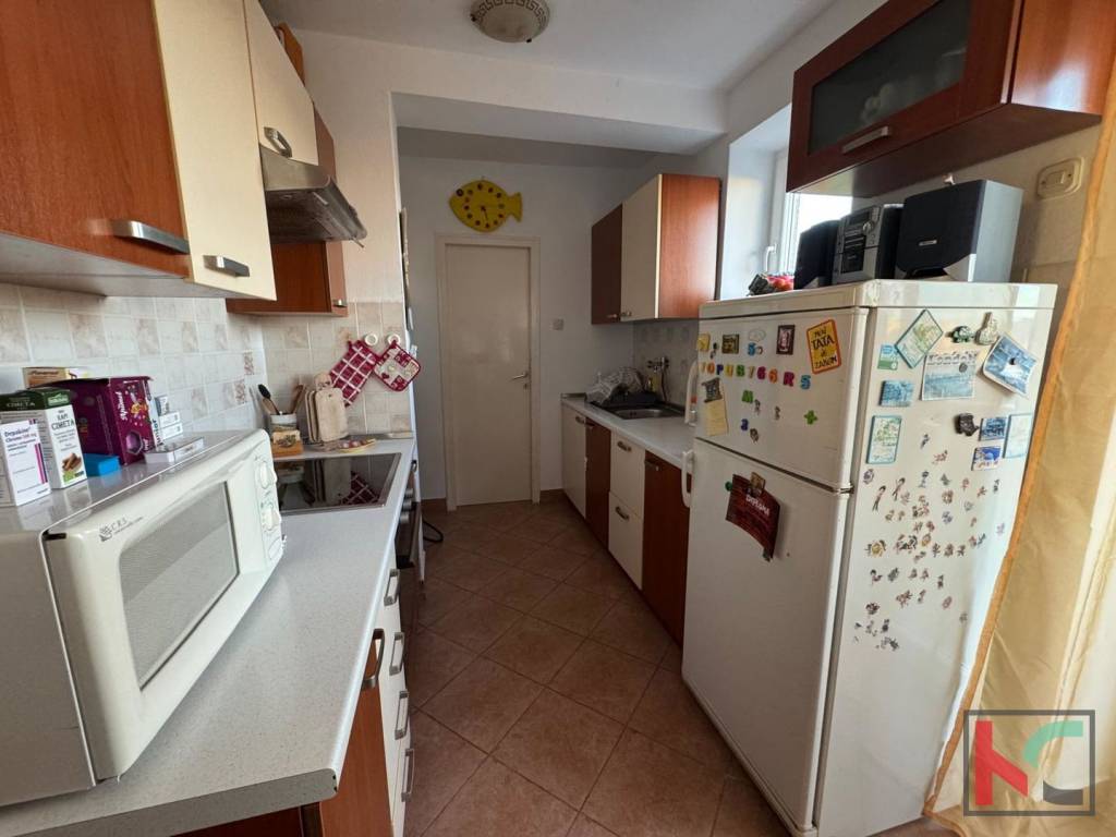 Nekretnina se smjestila na 5 katu stambene zgrade te se sastoji od ulaznog hodnika, dnevnog boravka s izlazom na balkon, kuhinje s blagovaonicom također s izlazom na drugi balkon, ostave, kupaonice te dvije spavaće sobe.