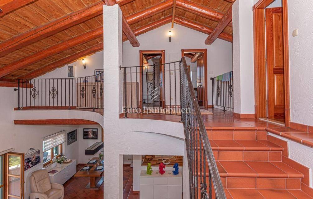 The villa is massively built and completely clad in stone.