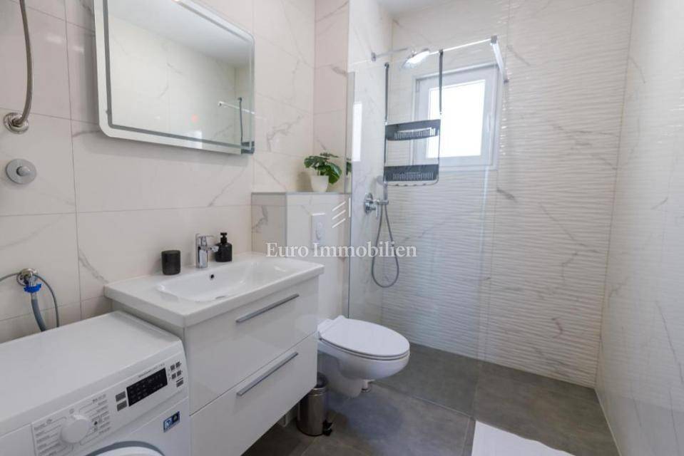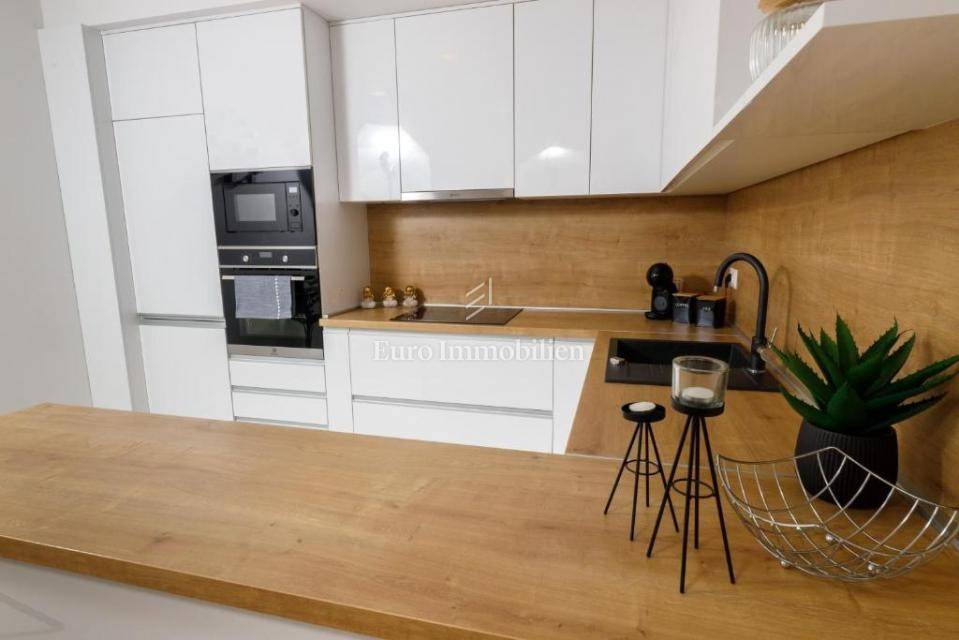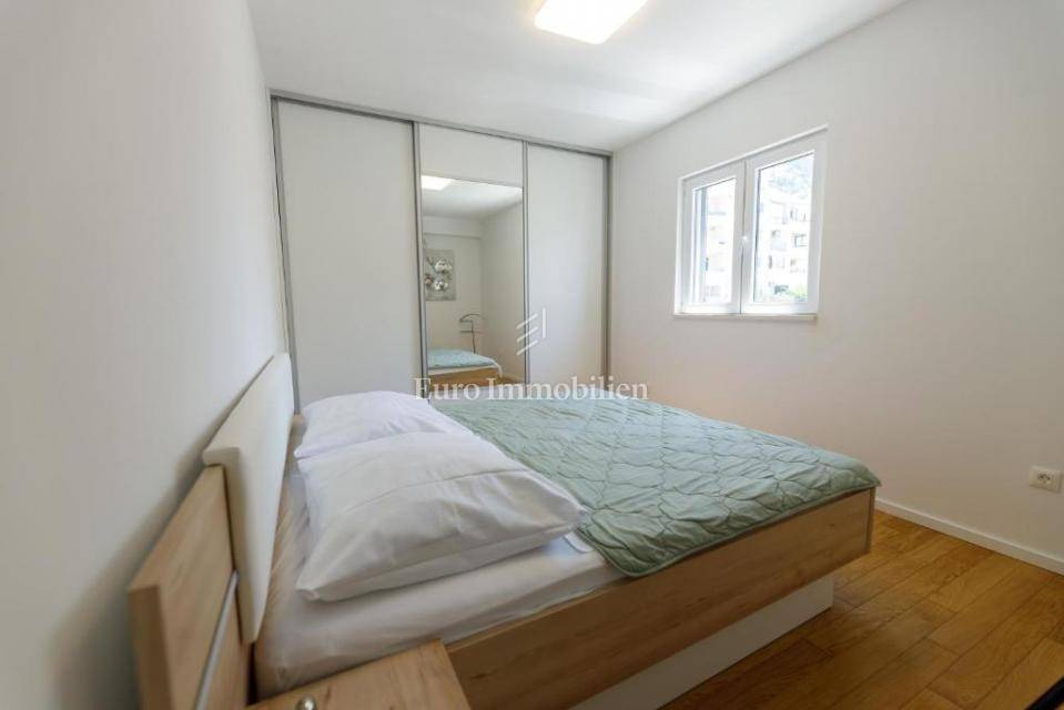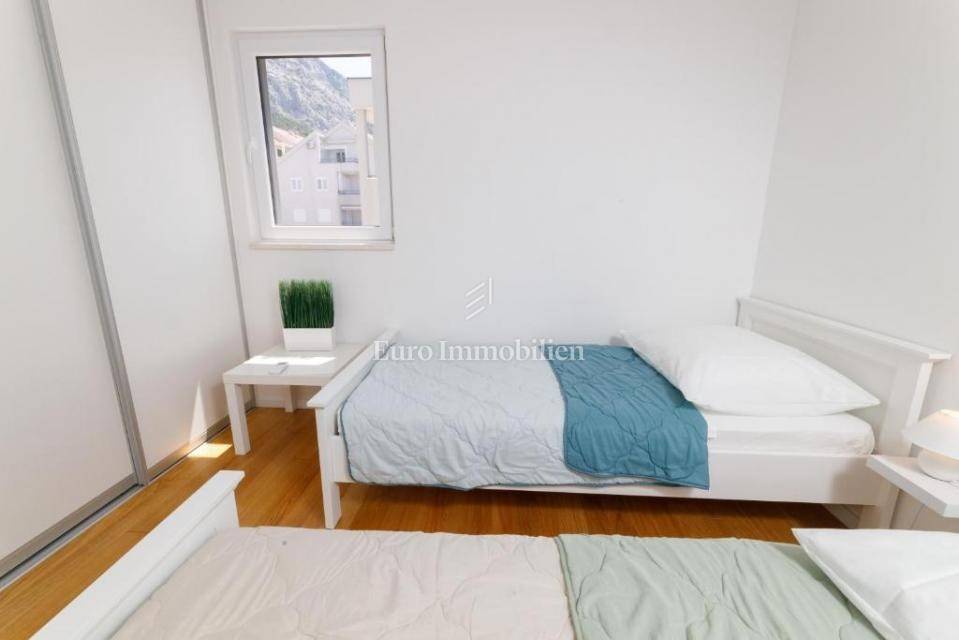 It consists of three bedrooms, a living room, a kitchen, a dining room, two bathrooms, a hallway and a spacious south-facing terrace of 16.64 m2 with a beautiful view of the sea, islands and the city of Makarska. This beautiful, spacious apartment is modernly furnished with new furniture and is being sold as such.