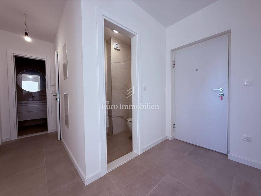 A two-bedroom apartment in a new building with a sea view and Biokovo view is located in the western part of Makarska. Apartment is located a modern building with an elevator. The building has a total of 34 apartments, two garage floors, a ground floor + four upper floors. The apartment is located on the third floor and has a total area of ​​63.38 m².