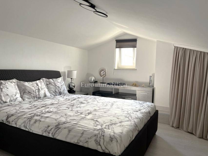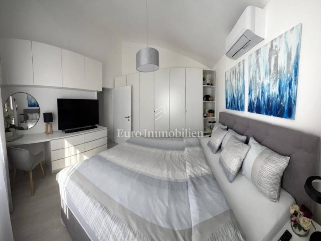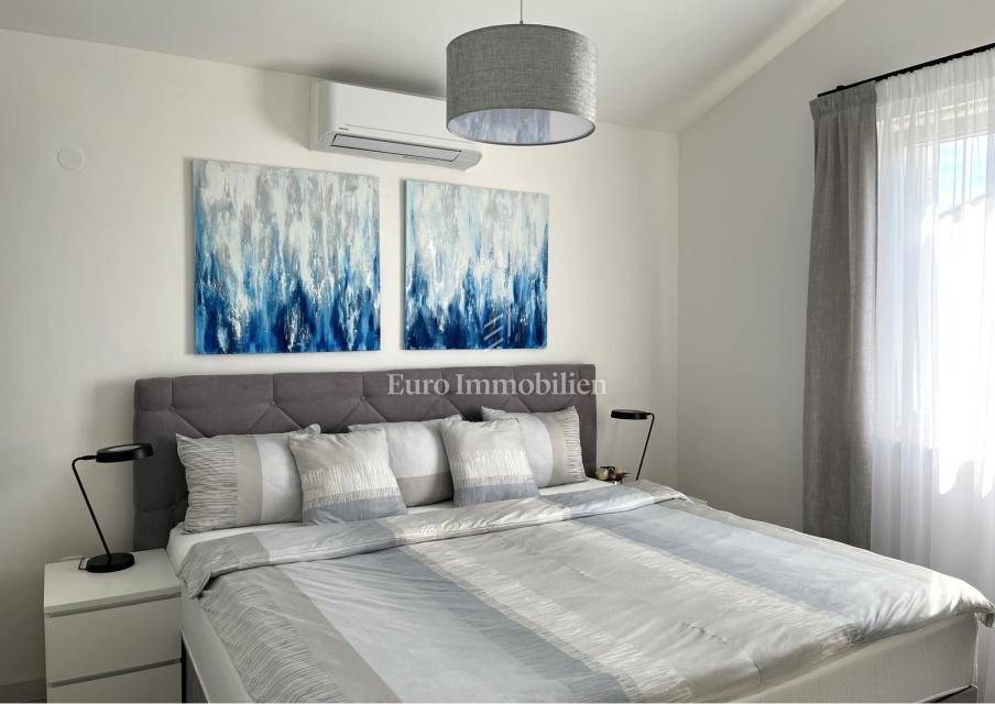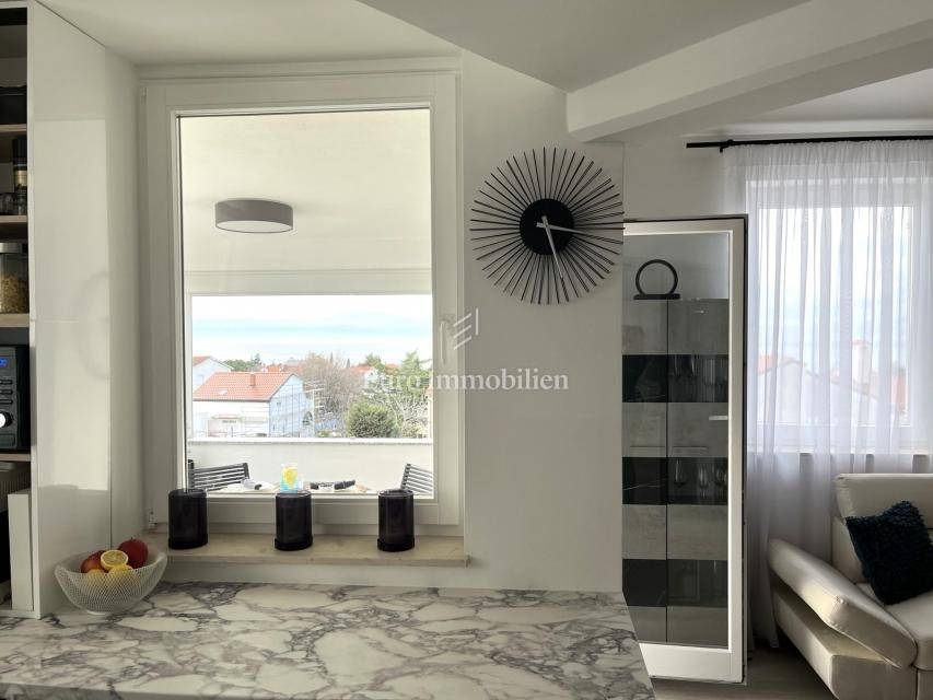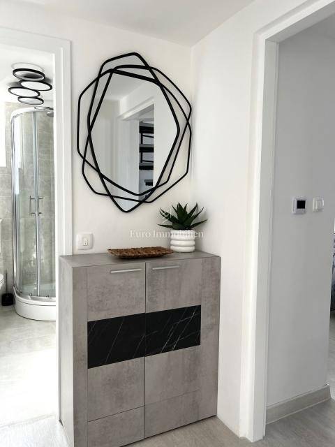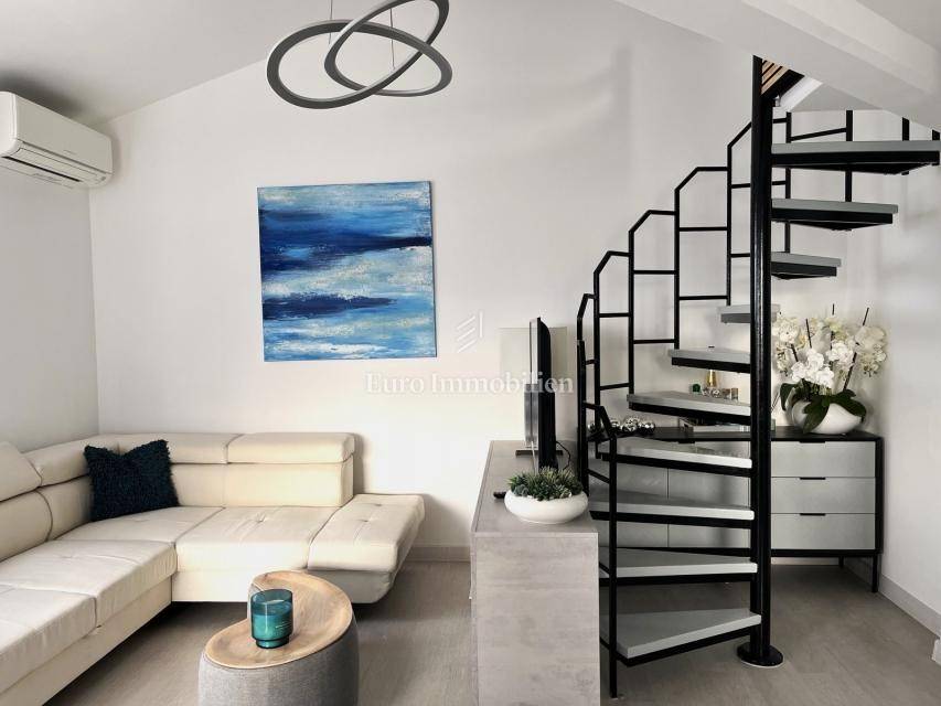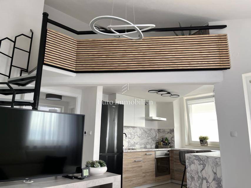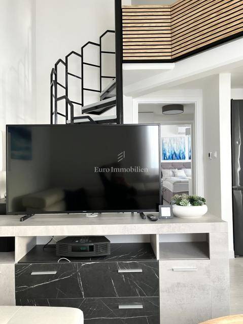 For sale is a furnished, newly renovated apartment with a large terrace, located on the second floor of a residential building in Malinska on the island of Krk! The total area of the apartment is 47.16 m2 (approx. 65 m2 on the floor plan) and consists of one bedroom, entrance hall, bathroom, kitchen with living room, large balcony with sea view and a gallery that is decorated as another bedroom. The apartment has a functional layout and is sold with new furniture and equipment. It comes with one parking space, and all documentation is in order. It is located in a quiet location, suitable for living or use in the summer months.