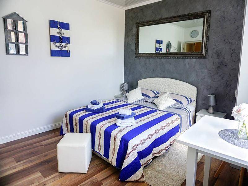 It consists of three bedrooms, a kitchen with living room, two bathrooms, a guest toilet, hallway, and two enclosed loggias offering a stunning, unobstructed view of the sea, islands, and the town of Makarska.