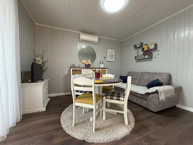 The apartment was renovated twice, in 2010 and 2021. Draco insulation was installed on the roof of the building, and 10 cm thermal insulation (styrofoam) on the apartment ceiling. It is air-conditioned with two air-conditioning units, fully furnished, and sold as such.