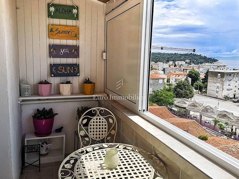 Furnished three-bedroom apartment in the very center of Makarska, with a beautiful sea view. The apartment has a total area of 80 m² and is located on the third floor of an older building without an elevator.