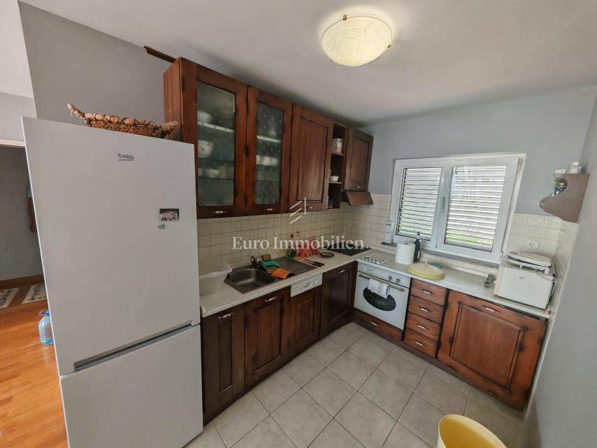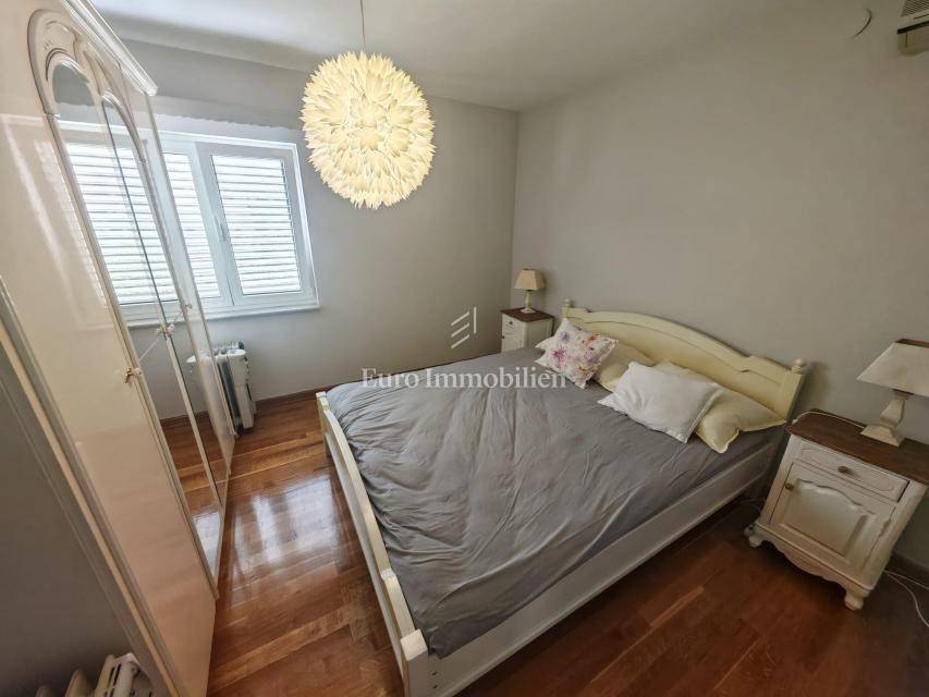 We are selling a fantastic apartment in a beautiful location near the center and the sea. The apartment is extremely well maintained and spacious and contains three bedrooms, two bathrooms, a kitchen with a dining room and a living room with access to a spacious, mostly covered terrace. The apartment is air-conditioned, and all windows are aluminum. The apartment also has a 60 m² garden, part of which can be used as parking for two cars (paved), while the remaining part can be arranged as desired (green area).