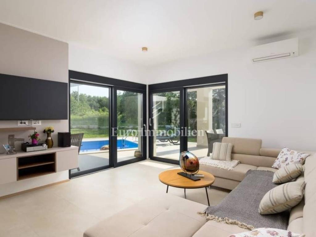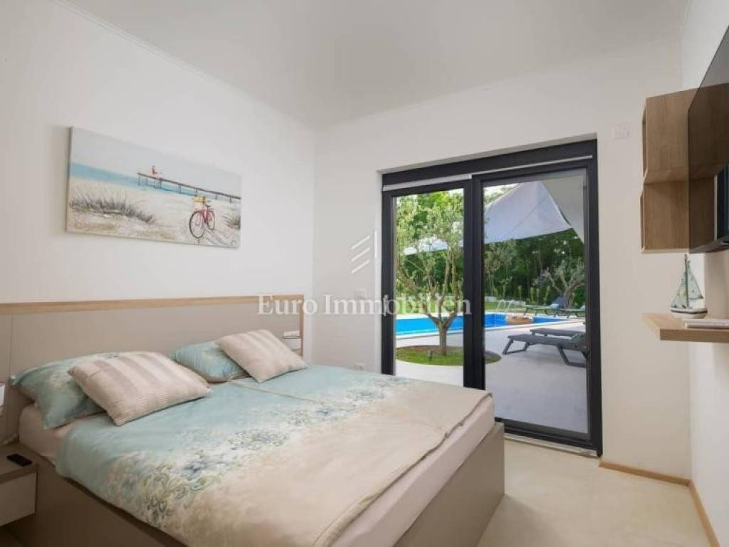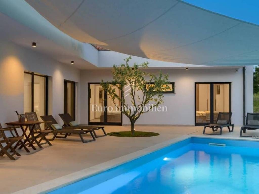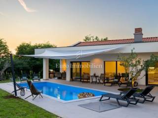 This modern villa with a pool is located in a small village near the town of Rovinj. It offers the perfect combination of luxury hidden from view surrounded by greenery and close to cycling trails, famous restaurants and wineries where you can taste the best wines and Istrian cuisine. The villa extends over 140m2 of interior space and consists of a hallway, three bedrooms, two bathrooms, an open space kitchen with a dining room and a living room. The living room opens onto a large terrace equipped with a barbecue and a summer dining area and a 31m2 swimming pool. In order to feel the authenticity of Istria, several olive trees and Mediterranean plants have been planted in the garden. All furniture has been carefully selected and is of top quality. Given its location, the villa is an ideal choice for those who love peace, but also that amenities are a few minutes' drive away. Pošaljite povratne informacije Bočne ploče Povijest Spremljeno