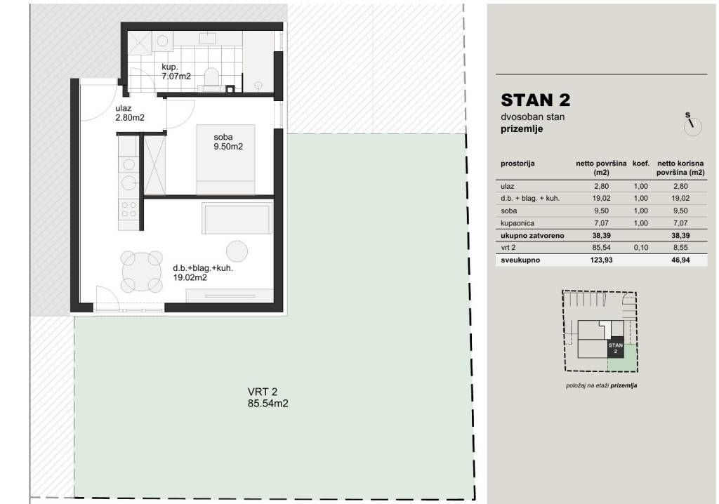 U ponudi je nova, urbano osmišljena stambena zgrada s liftom, smještena u mirnom i ugodnom dijelu Hrvatskog Leskovca, idealna za obiteljski život ili investiciju.STAN S2 sastoji se od kupaonice, spavaće sobe, kuhinje s blagovaonom i dnevnim boravkom s izlazom u privatni vrt.Stanu dodatno pripada vanjsko parkirno mjesto i spremište te se dodatno naplaćuje.Zgrada se sastoji od ukupno 10 stambenih jedinica, pažljivo projektiranih kako bi zadovoljile različite potrebe kupaca. Dostupni su:· dvosobni stanovi· trosobni stanovi· četverosobni stanoviKvadrature stanova kreću se od 39 m² do 90 m², uz optimalan raspored prostorija i maksimalnu iskoristivost prostora.Svaki stan uključuje:· vlastito vanjsko parkirno mjesto· spremišteKvaliteta gradnje i opreme:· vrhunska PVC stolarija antracit boje (unutra i izvana) s trostrukim izo staklom· podno grijanje putem dizalica topline – energetski učinkovito i ugodno· kvalitetna unutarnja stolarija· parket 1. klase· vrhunske sanitarije i keramika renomiranih talijanskih proizvođačaLokacija:Zgrada se nalazi na izvrsnoj lokaciji, u neposrednoj blizini svih sadržaja potrebnih za kvalitetan život – trgovina, škola, vrtića, javnog prijevoza i drugih ključnih sadržaja.Ova nekretnina predstavlja savršen spoj moderne arhitekture, kvalitetne izvedbe i funkcionalnosti.Za više informacija i dogovor oko razgledavanja, slobodno se javite.... Više na eurovilla.hr, ID: 589090