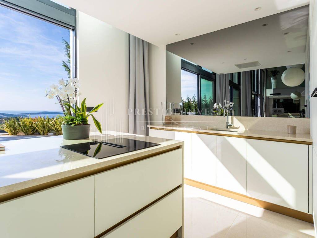 Situated in a prestigious residential area of Primošten, this exceptional villa offers breathtaking panoramic views of the Adriatic Sea, the charming old town of Primošten, and the surrounding islands, all embraced by lush Mediterranean greenery.