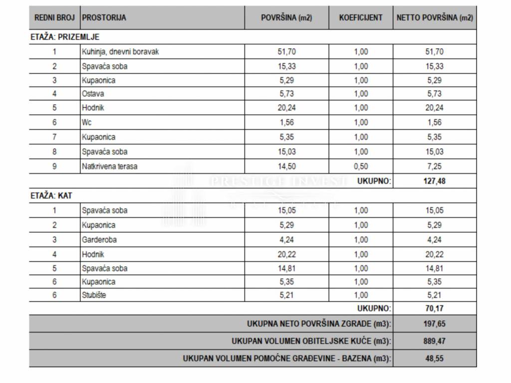 Total first floor (net): 70.17 m² TOTAL NET AREA: 197.65 m² TOTAL BUILDING VOLUME: 889.47 m³ POOL VOLUME: 48.55 m³