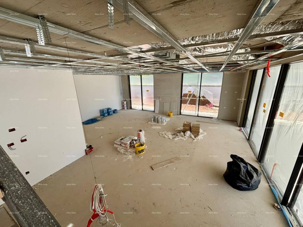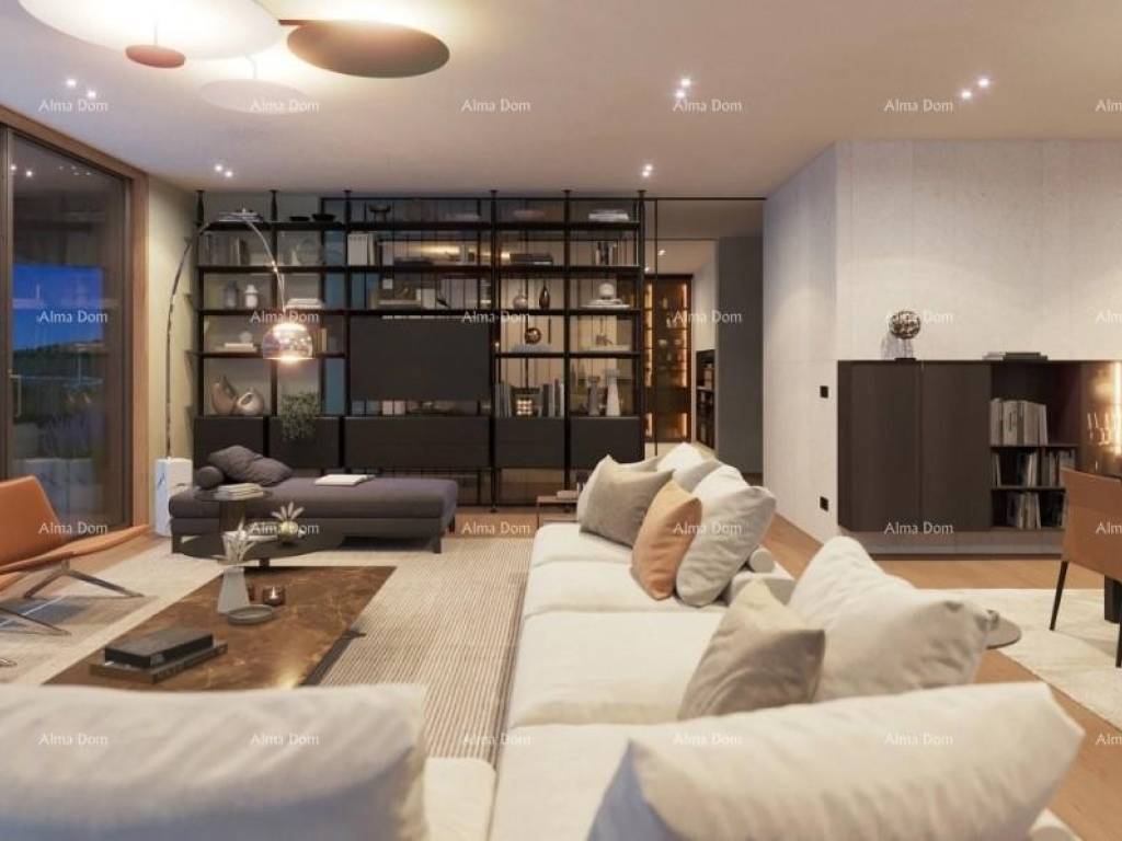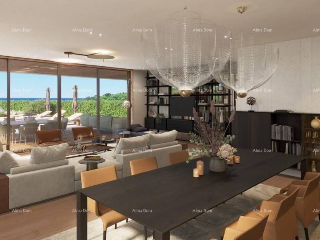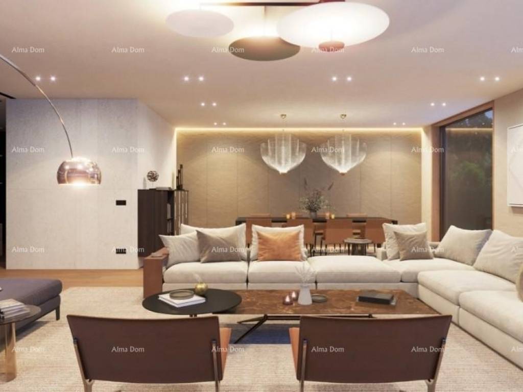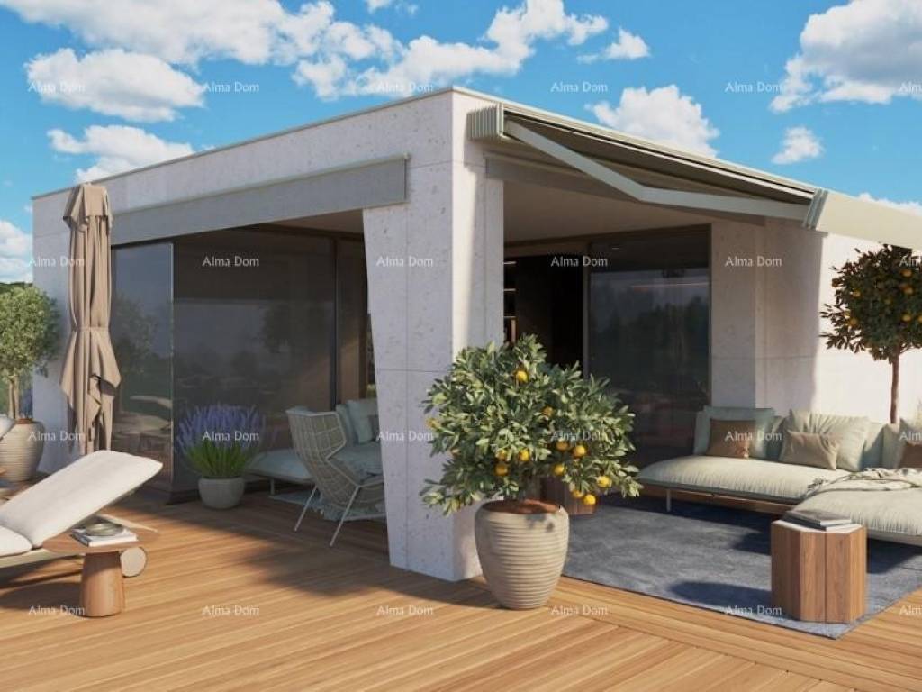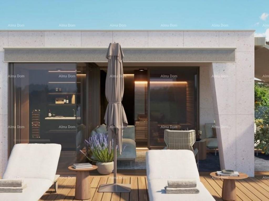 Продается современная вилла в Ровине. Вилла с лифтом, площадь 316 м2, состоит из первого этажа, второго этажа и мансарды. Он расположен на участке площадью 1180 м2 и состоит из просторной гостиной, которая соединена с большой крытой террасой, роскошной кухни Poliform, оснащенной высококачественной бытовой техникой, трех спален с отдельными ванными комнатами, гардеробными и крытыми террасами. Терраса на крыше с джакузи, сауной, эмоциональным душем, баром, туалетом и зеленым садом. Крытые террасы 164 м. Открытые террасы 105 м.