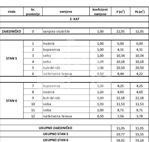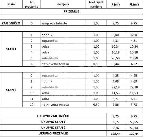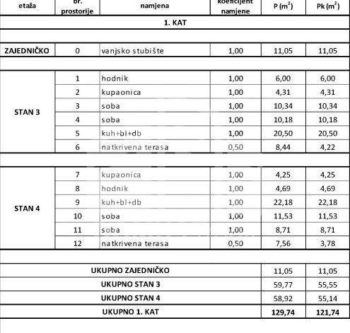 Građevinska brutto površina objekta iznosi 381,63 m2, a površina tlocrta 154,35 m2